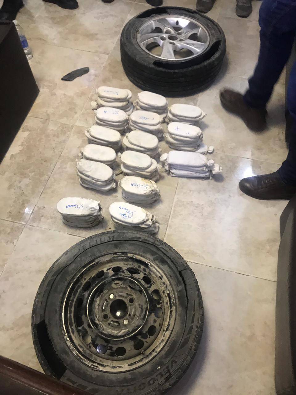 وفي القضية الثانية فقد تابع العاملون في الادارة امس معلومات وردت اليهم حول نية احد الاشخاص نقل كمية كبيرة من المواد المخدرة من محافظة المفرق باتجاه العاصمة ، حيث جرى وضع عدد من الدوريات في الطرق المحتمل سلوكها وتمكنت احدى الدوريات وفور مشاهدته ايقافه والقاء القبض عليه وبتفتيش المركبة عثر على 133 كف من مادة الحشيش المخدر اخفيت داخل اطارات كان يضعها داخل المركبة وبوشر التحقيق .