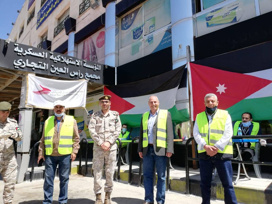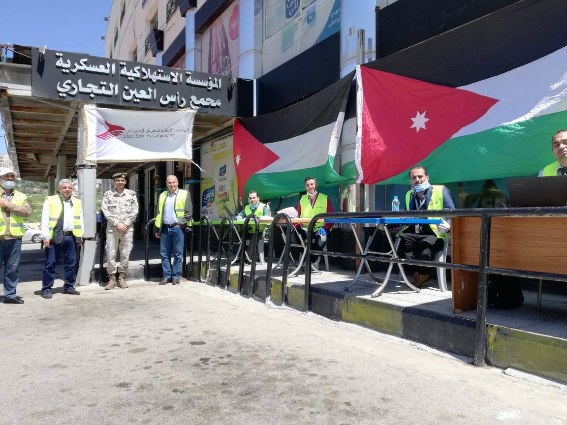 واصلت المؤسسة العامة للضمان الاجتماعي من خلال كوادرها وبالتعاون مع القوات المسلحة الأردنية وجمعية الهلال الأحمر الأردني عملها بتوزيع كوبونات تسوّق مدفوعة لعمال المياومة غير المقتدرين ممن تضرروا بالأزمة الراهنة تتيح لهم شراء احتياجاتهم من أسواق المؤسسة الاستهلاكية العسكرية.