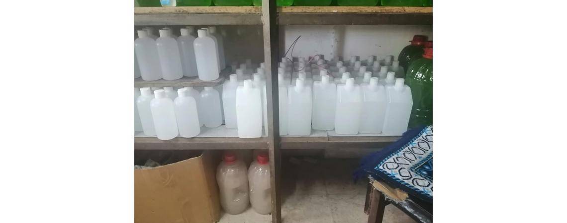 فيما ضبط شخص داخل معمل غير مرخص في لواء الرصيفة يقوم بتصنيع المواد المعقمة المقلدة وضبط كمية من تلك المواد داخل المعمل .