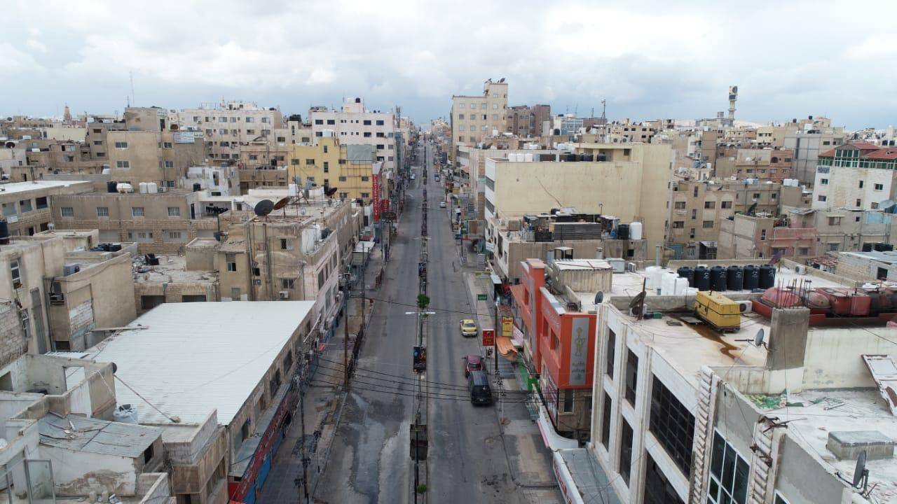 هكذا بدت مدينة الزرقاء بعدسة الطائرة للمسيرة "الدرون" التابعة لمديرية الامن العام اليوم الجمعة 10/4/2020