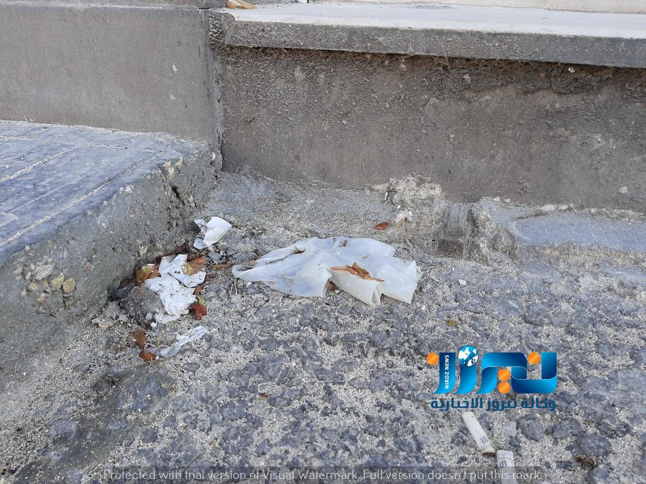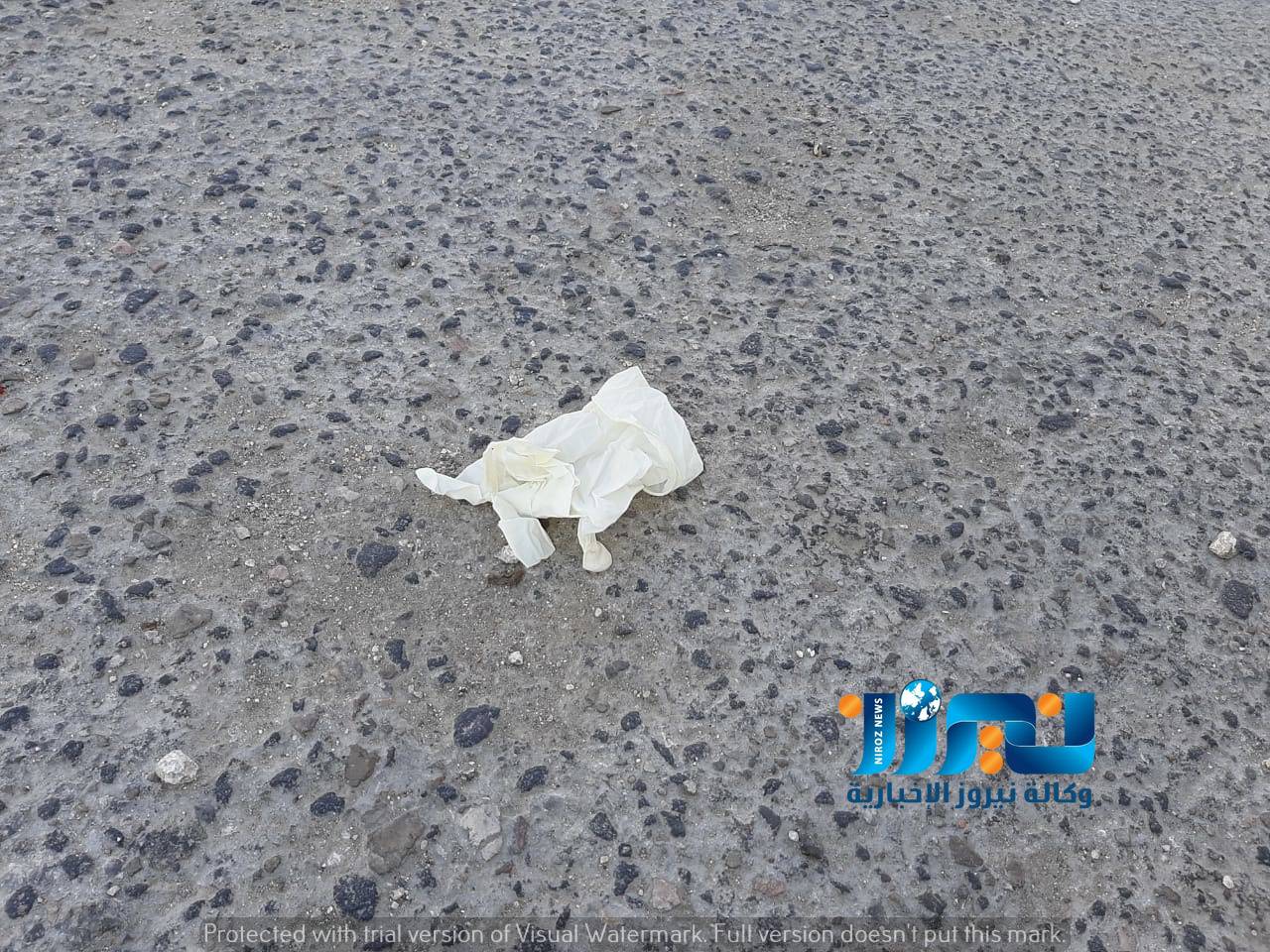 حيث أهم ما تم رصده ، هو قفازات ،وكمامات، ملقاة على الأرض ،حيث المارة بالشوارع من المواطنين ، لا يدرك كل مواطن مدى خطورة ذلك ،من قفازات وكمامات مستعملة ملقاة  على الأرض