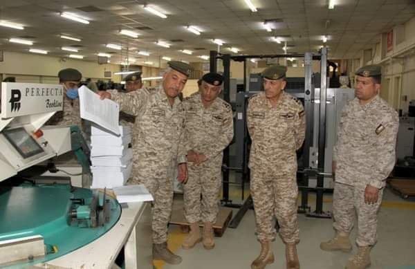 وجال مساعد رئيس هيئة الأركان المشتركة للإدارة والقوى البشرية في جميع أقسام قيادة المطابع واطلع على آلية انتاج المواد المطبعية لوحدات القوات المسلحة والأجهزة الأمنية والوزارات والدوائر الحكومية والمؤسسات المدنية والتي تُنتج بحرفية ودقة عالية وبأسعار منافسة للسوق المحلي.