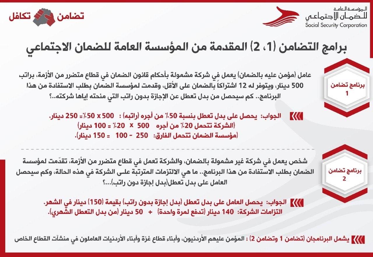 أعلنت مؤسسة الضمان الاجتماعي عن ثلاثة برامج جديدة تكافلية لحماية الاقتصاد والمواطنين وهي: