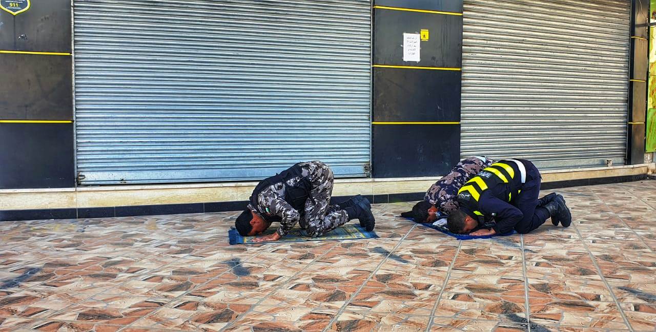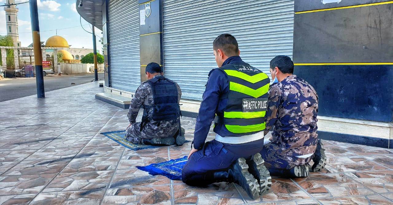 وإليكم بعض الصور التي تم التقاطها ،حيث تضم نشامى من الأمن العام ،والدفاع المدني و قوات الدرك ، اثناء أدائهم الواجب الرسمي ،حيث يقومون بأداء صلاة الجماعة في الميدان .