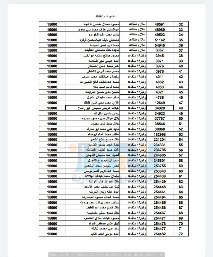 تعلن القيادة العامة للقوات المسلحة الاردنية-الجيش العربي/مديرية مؤسسة الاسكان والاشغال العسكرية بأن الضباط وضباط الصف والافراد المذكورين تالياً قد دنت اقدميتهم للحصول على قرض من صندوق الاسكان العسكري وعليهم المراجعة خلال ساعات الدوام الرسمي مصطحبين معهم الوثائق التالية :