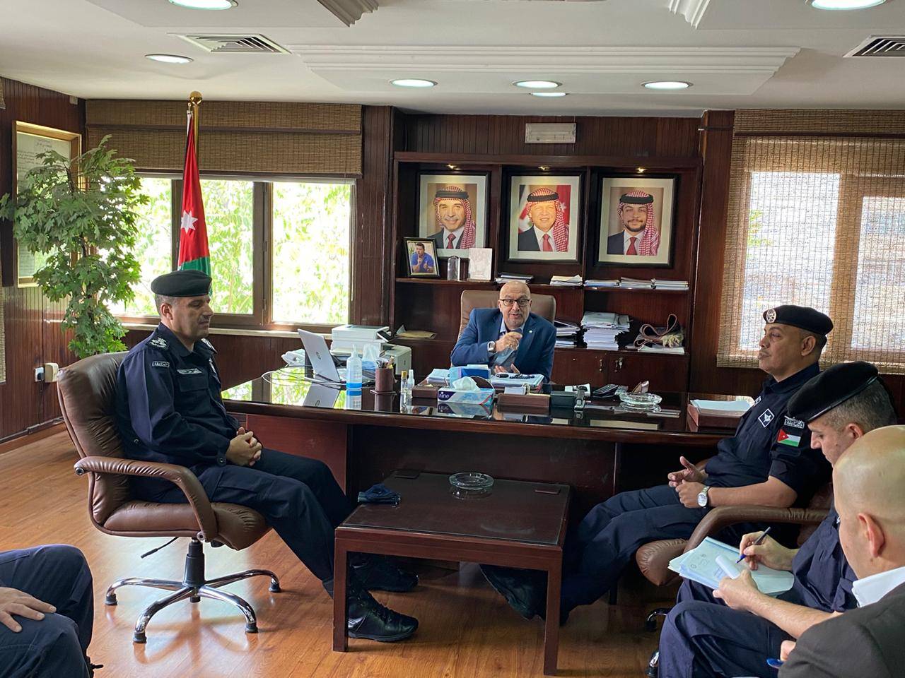 أكد وزير المياه والري المهندس رائد ابو السعود خلال اجتماعه مع مدير الادارة الملكية لحماية البيئة العميد ناهض مقابلة ومساعده العقيد عيسى سالم ومدير العلاقات العامة الرائد ابراهيم الرجوب بحضور مساعد الامين العام للاعلام الناطق الاعلامي عمر سلامة ومدير دائرة المتابعة ضابط ارتباط ازمة كورونا ابراهيم عبادة وعدد من ضباط الادارة الملكية ومسؤوليه ومدير مكتب الادارة لدى الوزارة على ضرورة زيادة اوجه التعاون وتنسيق الجهود المشتركة في كافة مناطق المملكة لضبط كافة المخالفين بهدف حماية المصادر المائية خاصة في ظل استمرار ازمة كورونا والازياد الهائل في الطلب على المياه والذي سيرتفع للاستخدامات المنزلية الى نحو (610) مليون م3 بزيادة اكثر من (200) مليون م3 عن السنوات الماضية مشيدا بالتعاون بالدعم الكبير الذي تقدمه الادارة الملكية لحماية البيئة لقطاع المياه .
