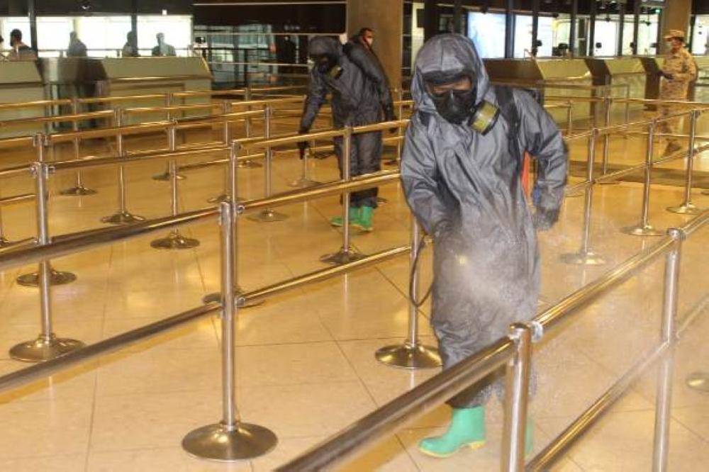 كما وقامت فرق من الإسناد الكيماوي التابعة لسلاح الهندسة الملكي بتطهير وتعقيم المطار بعد كل رحلة قادمة لجعل المطار بيئة آمنة باستمرار.
