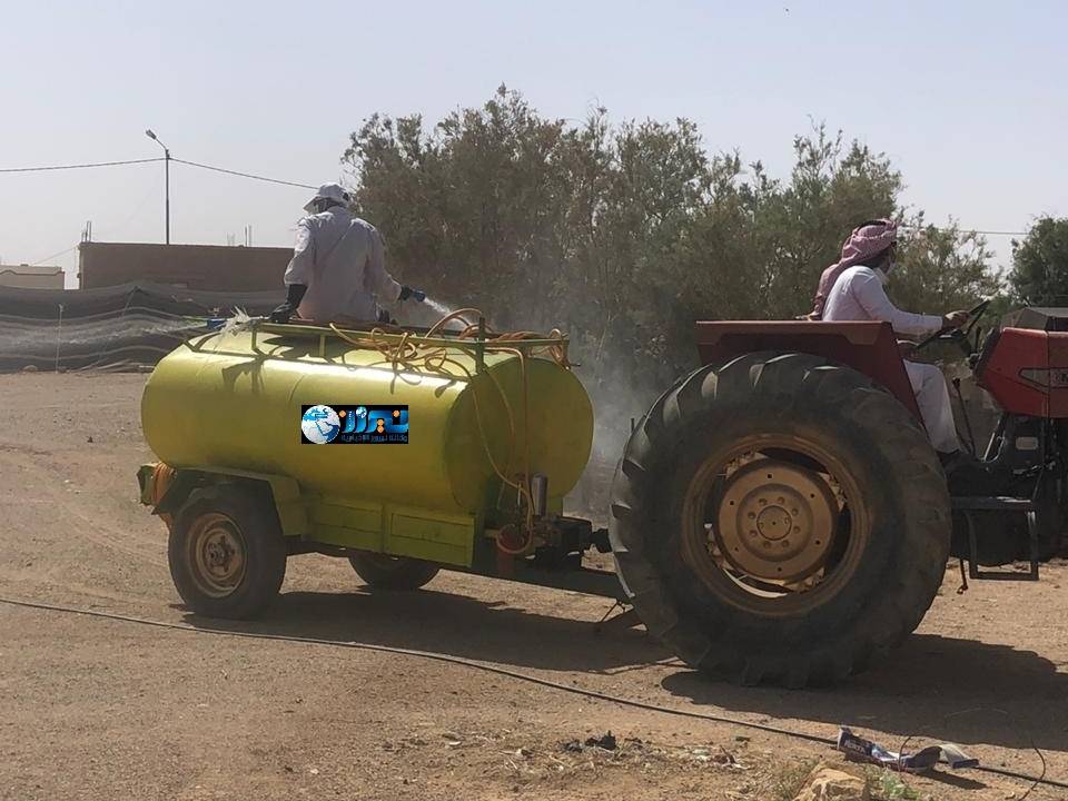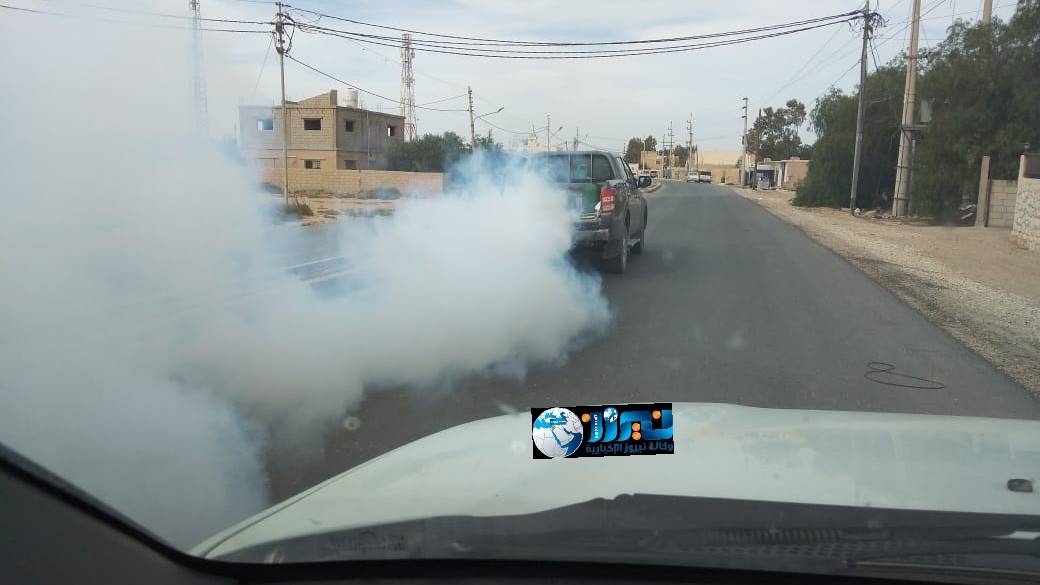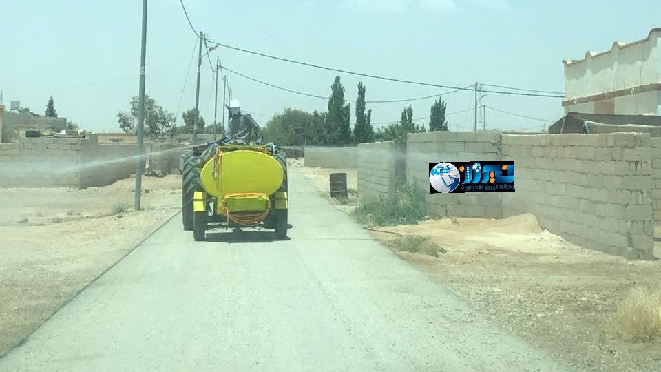 ودخلت الحملة حيز التنفيذ يوم الثلاثاء الماضي، برش وتعقيم شوارع و منازل قضاء الجفر / لواء قصبة معان.