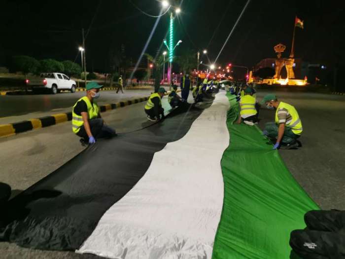 تحت شعار علمنا عال الذي أطلقته الحكومة احتفالا بعيد الاستقلال الرابع والسبعين، وفي لفتة مميزة في ظل الأوضاع التي تمر بها المملكة الاردنية الهاشمية رفعت بلدية سحاب على مدخلها علما بطول 105 امتار، ضمن فعاليات احتفالية أعدتها البلدية لهذه المناسبة الغالية وبمناسبة عيد الفطر المبارك كما وزينت عدة معالم في سحاب مثل مبخرة الشهيد معاذ الكساسبة وفانوس سحاب وطائرة الشهيد بالاعلام الاردنية.