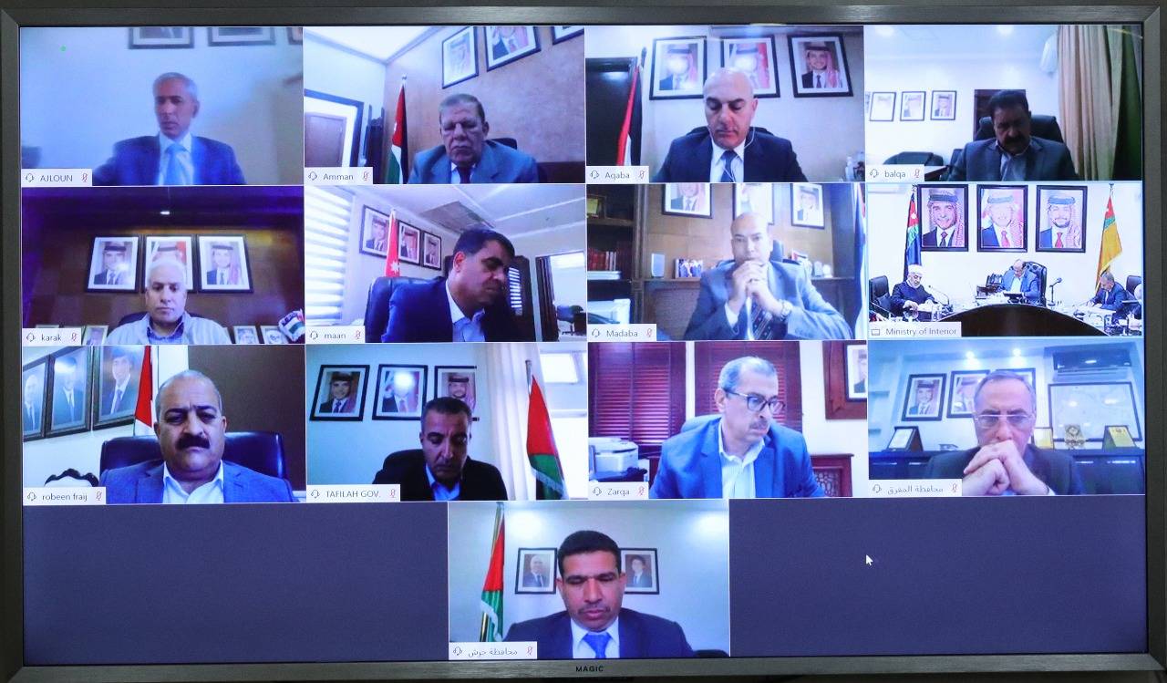 عقد وزير الداخلية سلامة حماد في مبنى الوزارة اليوم الاثنين اجتماعا عن بعد مع محافظي الميدان عبر تقنية الاتصال المرئي والمسموع بحضور وزير الاوقاف والشؤون والمقدسات الاسلامية الدكتور محمد الخلايلة.