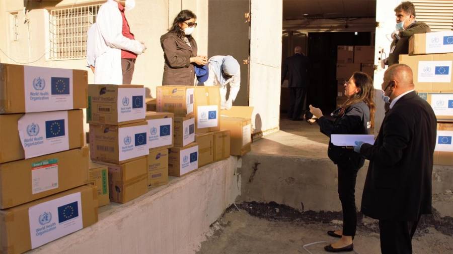 تسلمت وزارة الصحة اليوم الاربعاء، معدات ولوازم طبية قدمتها منظمة الصحة العالمية لدعم جهود الوزارة في التعامل مع فيروس كورونا واحتوائه ومنع انتشاره.