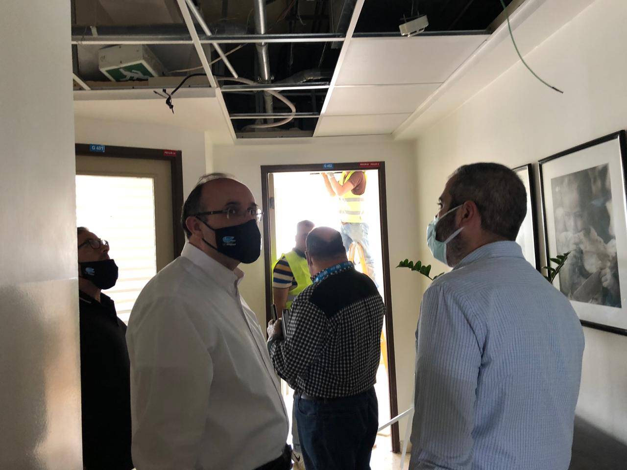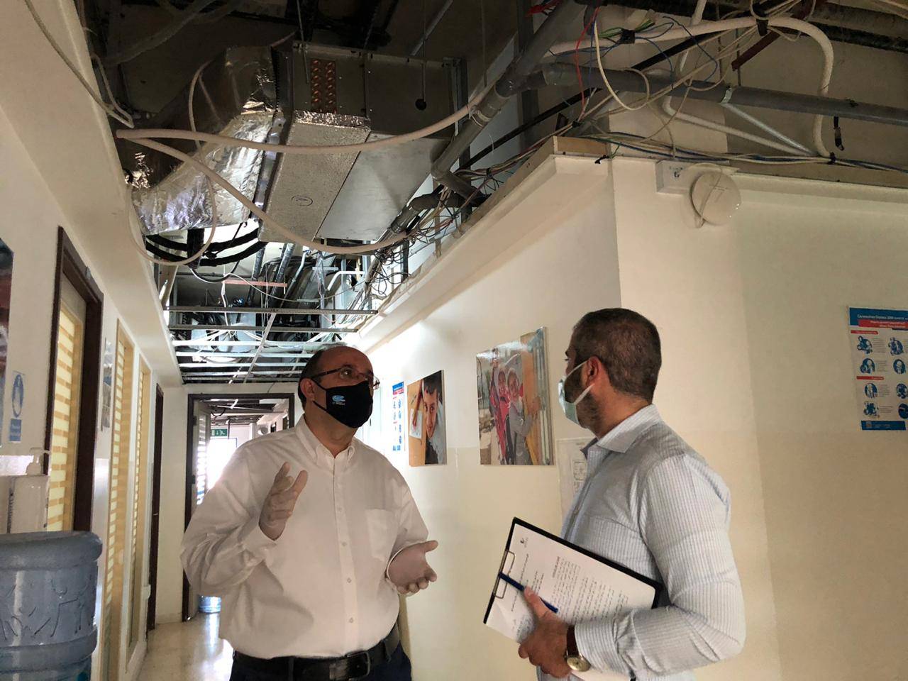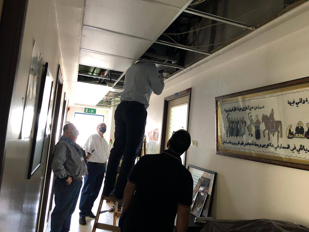 وأشار إلى أنه تم فحص وتحديد آلية عمل وحدات التكييف وطريقة انتقال الهواء ومسارات الهواء من والى وحدات التكييف، إضافة إلى تحديد المواقع التي من الممكن أن يحدث بها اختلاط بالهواء بين المكاتب، مبينا أن الفريق تمكن بعد ذلك من وضع الحلول التطبيقية واعطاء الارشادات الفنية لتأمين التشغيل الآمن وتأمين القدر الكافي من التهوية الطبيعية والهواء النقي لكل المكاتب، مع وضع ملاحظات تنفيذية على الصيانة اللازمة لوحدات التكييف.