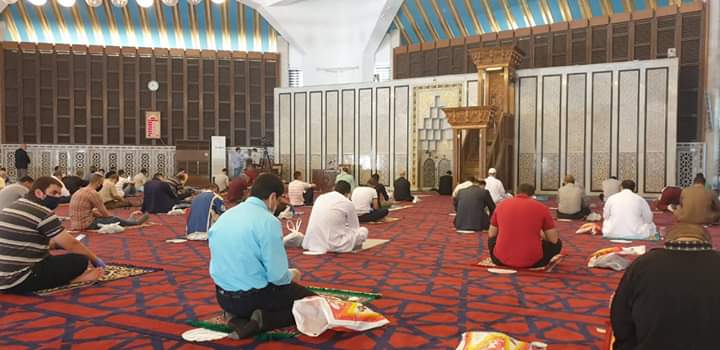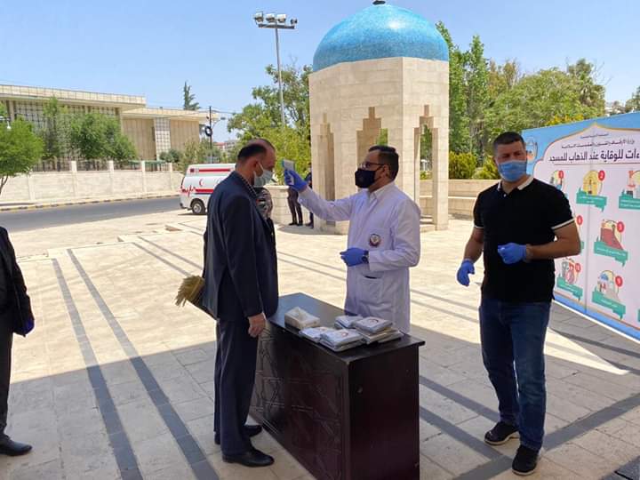 وعم الفرح بين المصلين لأداء صلاتهم الأولى بعد مضي أكثر من شهرين منذ منع الصلاة تفادياً لانتشار  فيروس الكورونا. وكان التزام جميع المصلين بكافة تعليمات الوقاية له اثر واضح للحد من انتشار عدوى فيروس الكورونا.