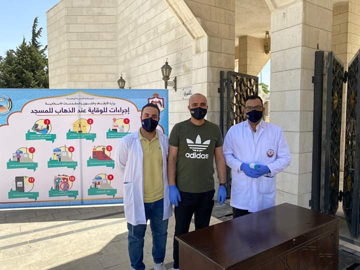 تطوع فريق من كوادر المستشفى يوم الجمعة للمساعدة في تنظيم صلاة الجمعة الأولى في مسجد الشهيد الملك عبد الله وتوزيع أدوات السلامة العامة من كمامات وقفازات ومعقمات وسجادات الصلاة على المصلين في المسجد. كما وقام فريق آخر من كوادر المستشفى التخصصي في خدمة المصلين في كنيسة قلب يسوع الأقدس حيث تم قياس الحرارة لجميع المصلين قبل الدخول إلى الكنيسة وذلك توزيع كمامات ومعقمات الايدي على المصلين.