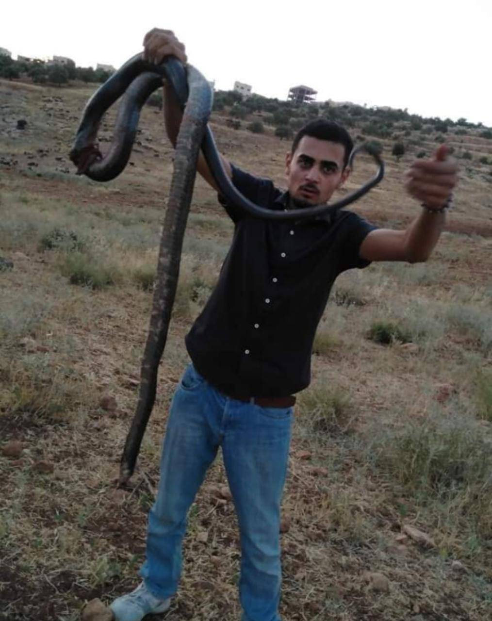 تمكن الشاب محمد مأمون عتمة ، في محافظة جرش ، بالقيام في قتل أفعى يتراوح طولها حوالي ثلاث أمتار ونصف .