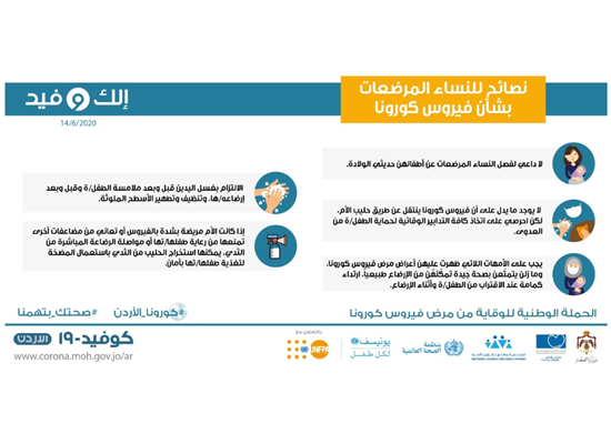 وجهت وزارة الصحة، مساء الاحد، نصائح للأمهات والمرضعات في الاردن، حول الرضاعة الطبيعية في زمن الكورونا.