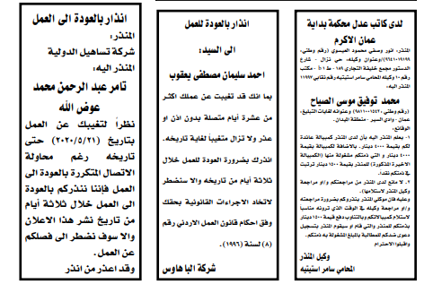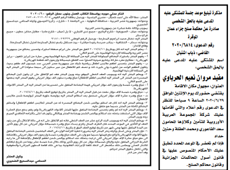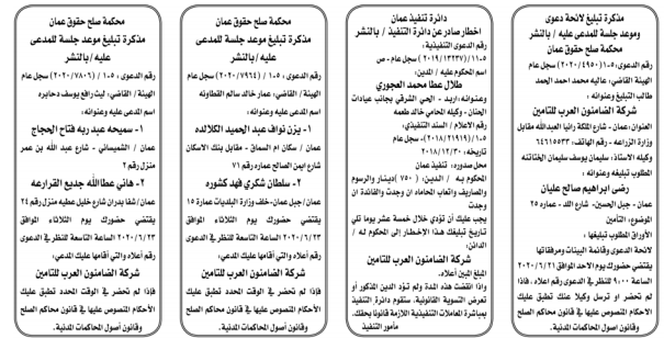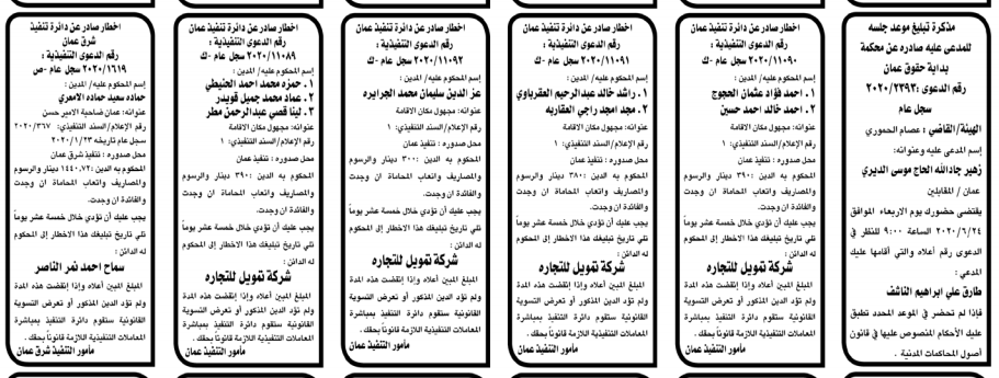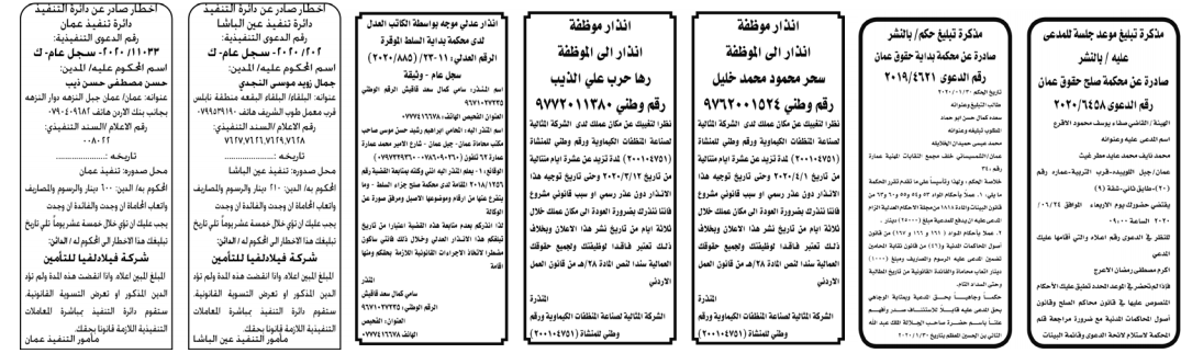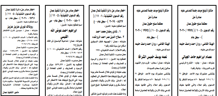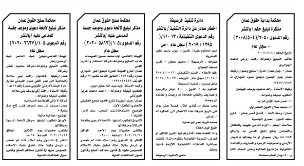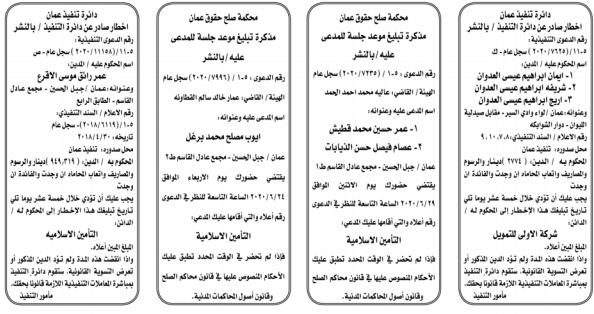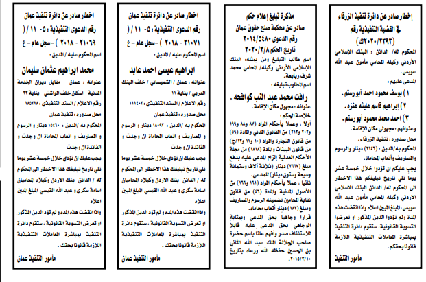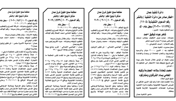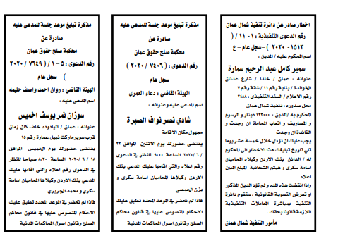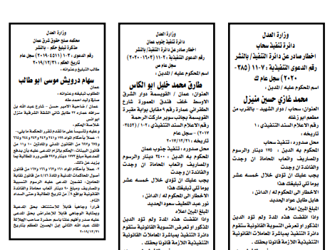 إخطارات وإشعارات صادرة عن دوائر التنفيذ بحق مدعى عليهم أشخاص كانوا أم