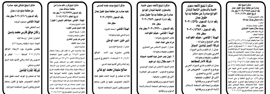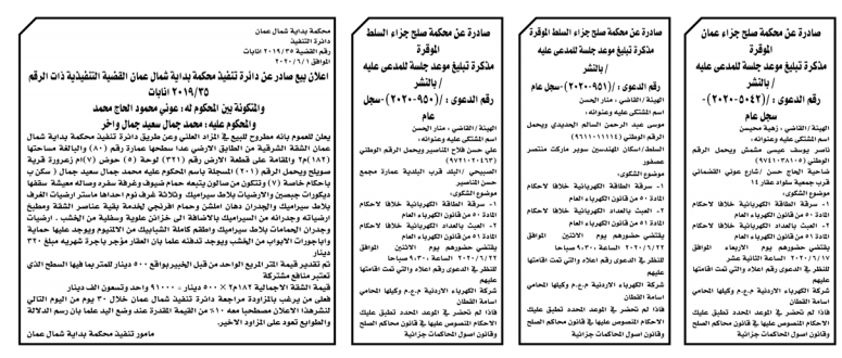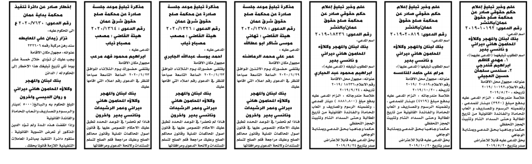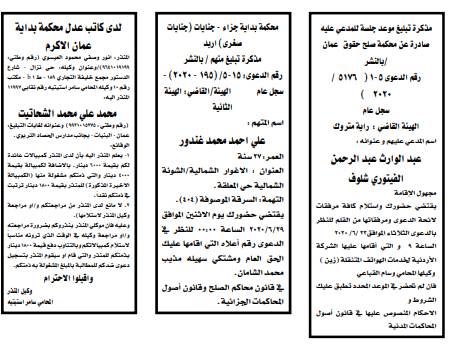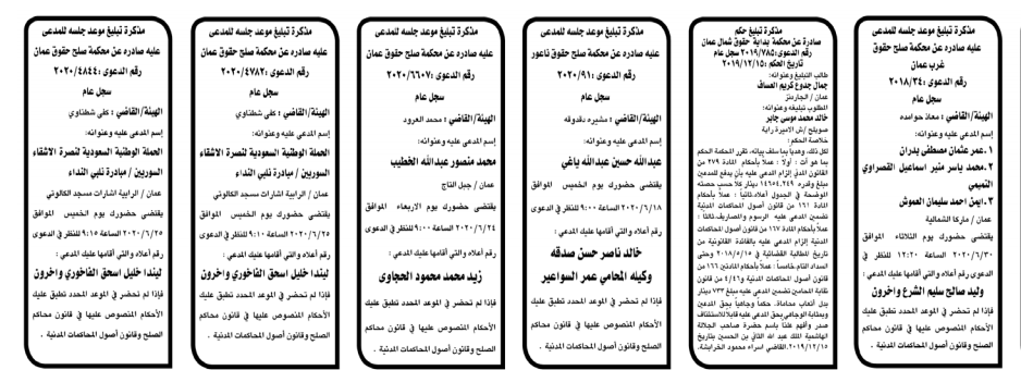 مذكرات الطلب التي تنشرها سرايا بعض الاحكام الصادرة غيابياً إضافة إلى
