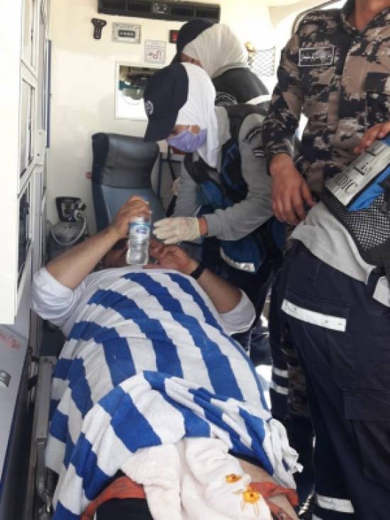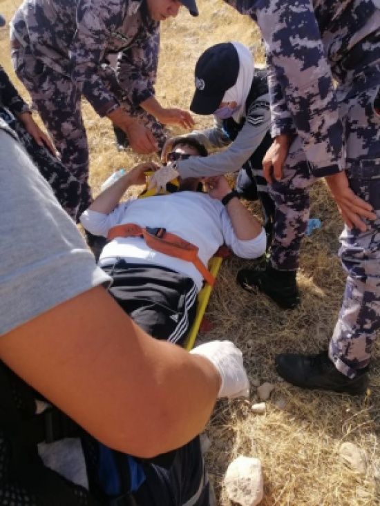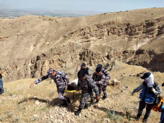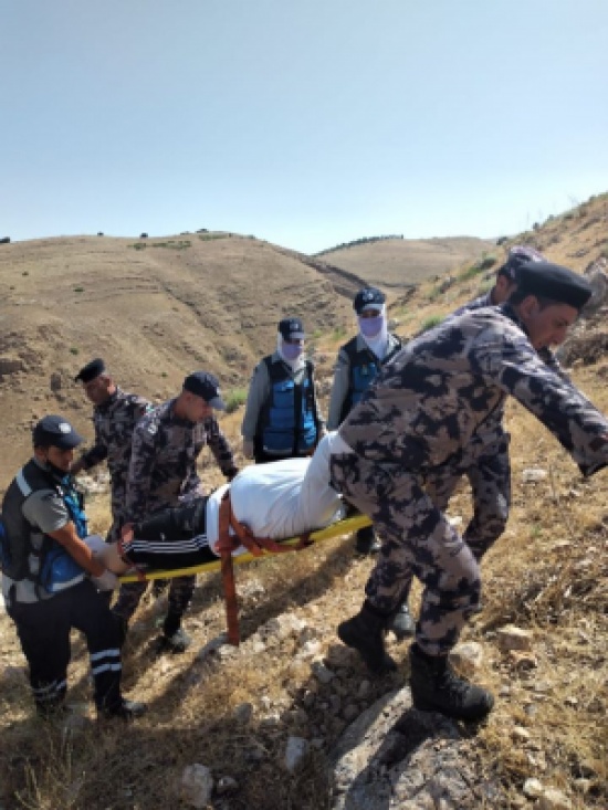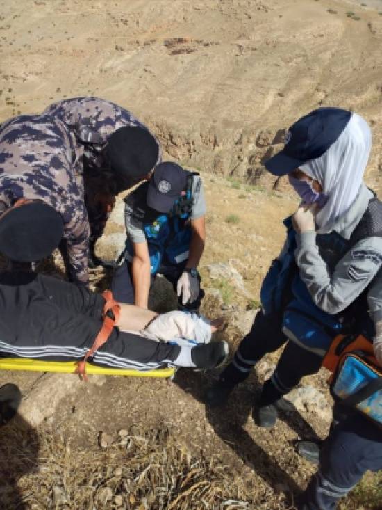 تعاملت كوادر الإنقاذ والإسعاف في مديرية دفاع مدني عجلون صباح اليوم مع حادث سقوط شخص في منطقة جبلية وعرة تبعد عن الطريق الرئيسي 2.5 كم بمنطقة حلاوة مما أدى إلى إصابته برضوض وكسور حيث قامت فرق الاسعاف بتقديم الإسعاف الأولية اللازمة للمصاب ونقله إلى مستشفى الإيمان الحكومي وحالته العامة متوسطة .