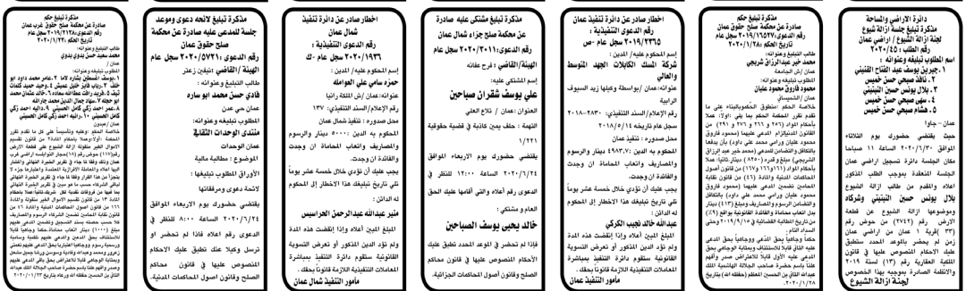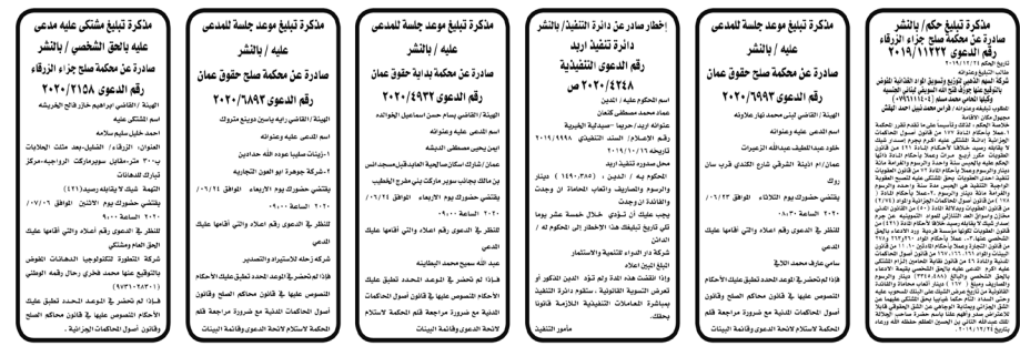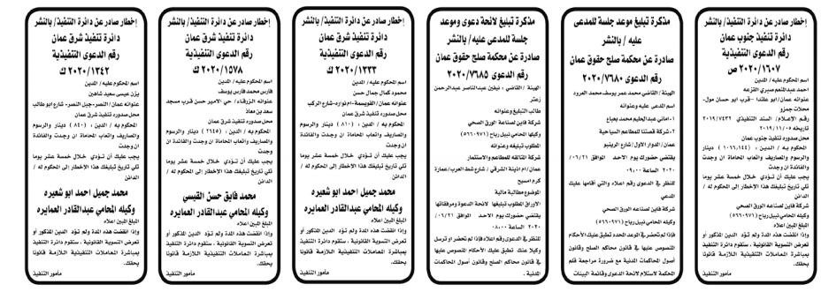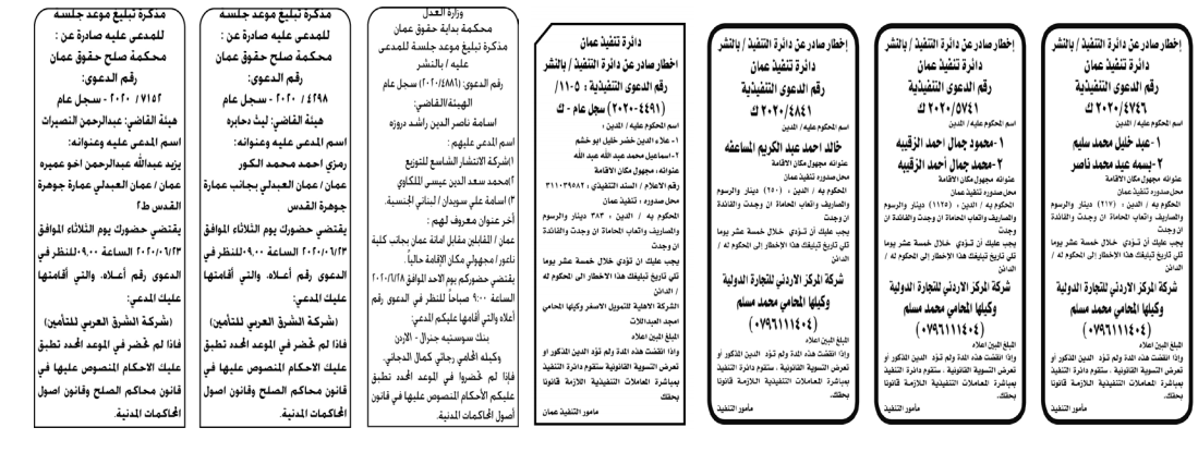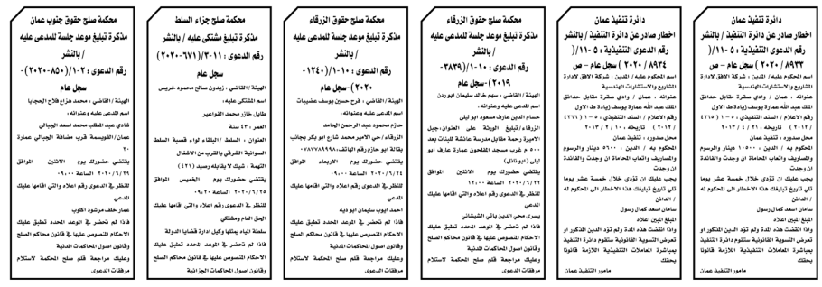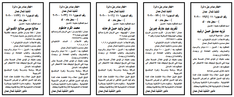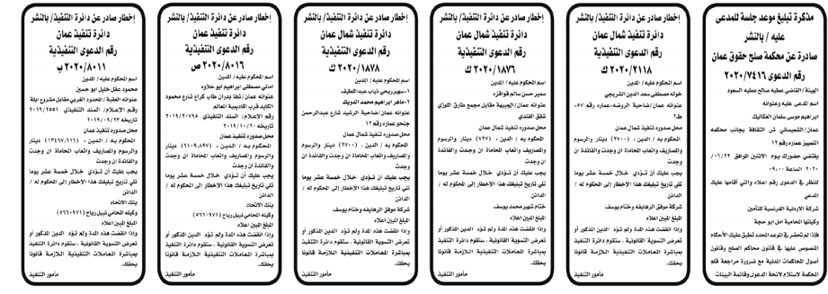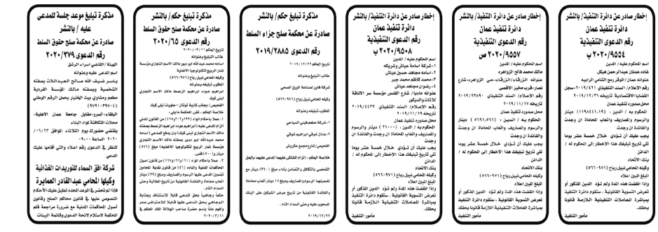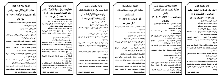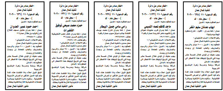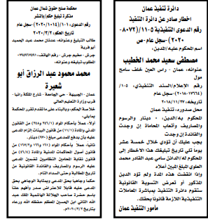 إخطارات وإشعارات صادرة عن دوائر التنفيذ بحق مدعى عليهم أشخاص كانوا أم