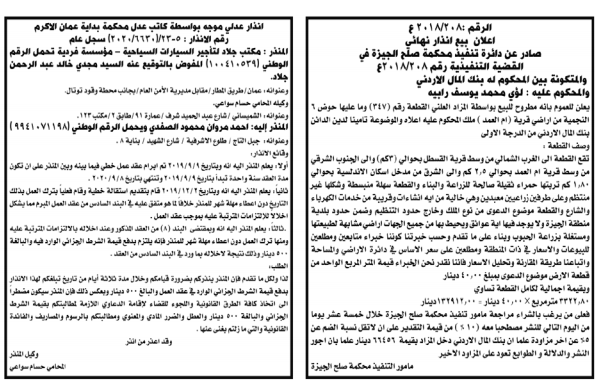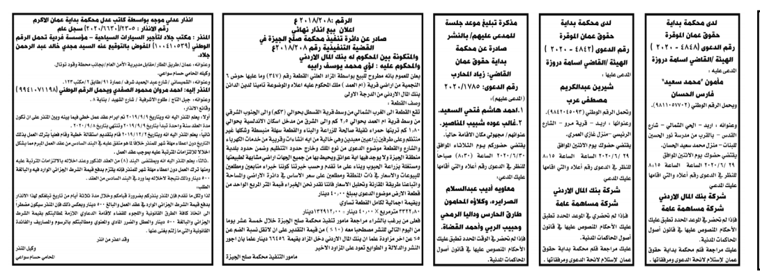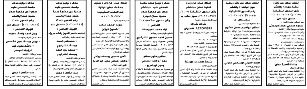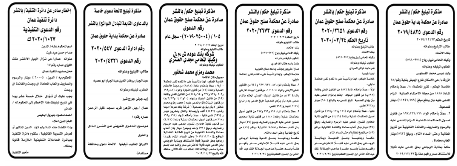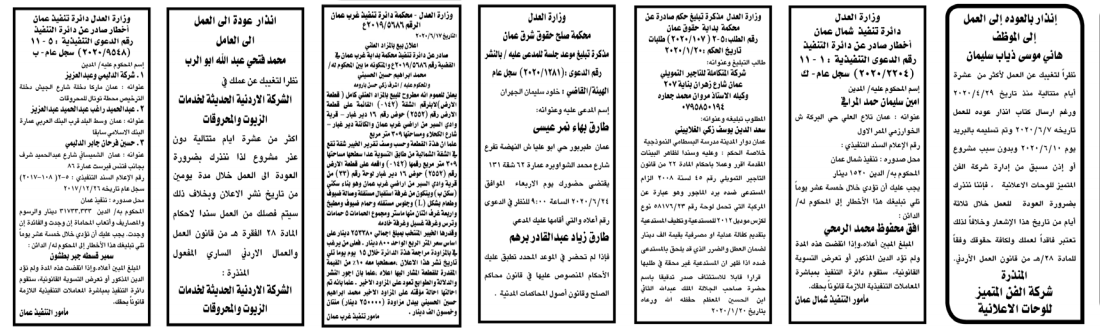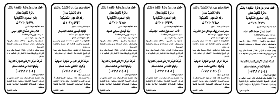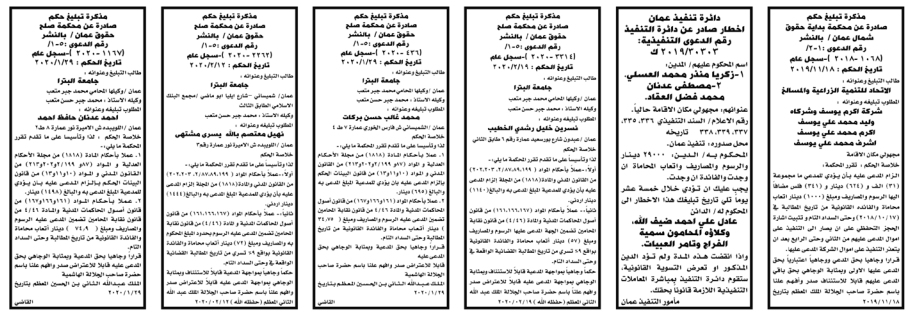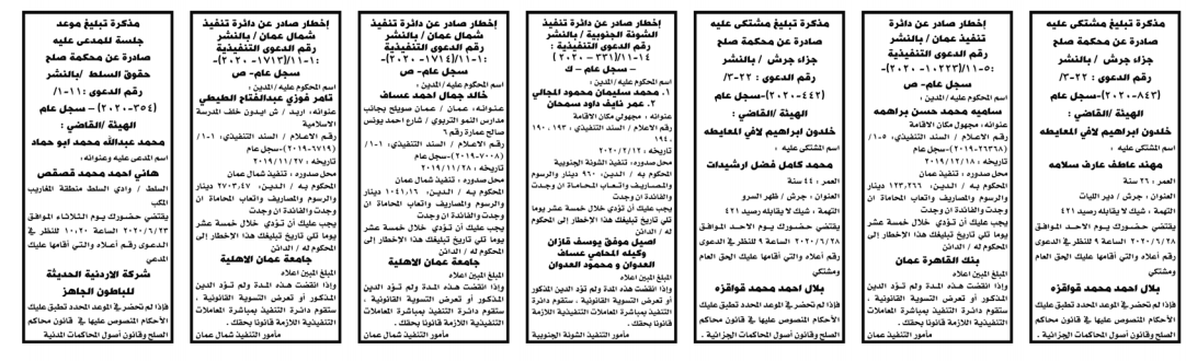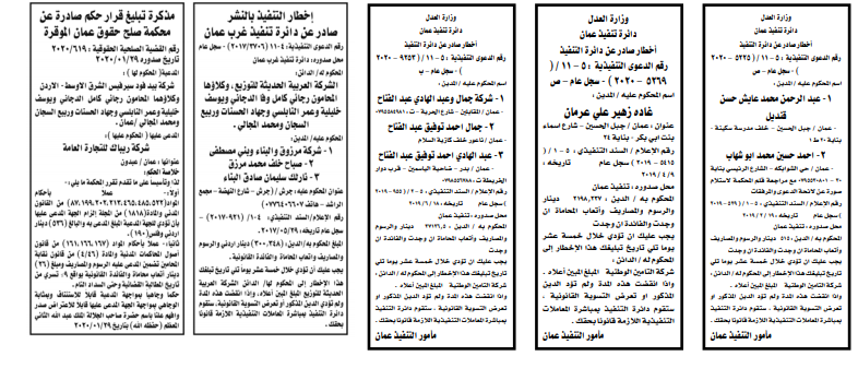 إخطارات وإشعارات صادرة عن دوائر التنفيذ بحق مدعى عليهم أشخاص كانوا أم