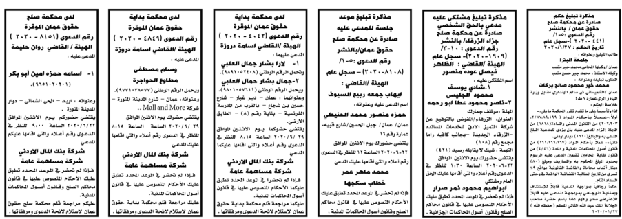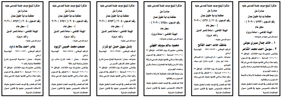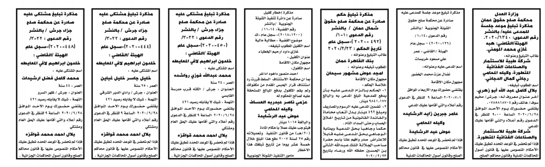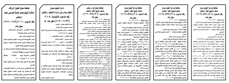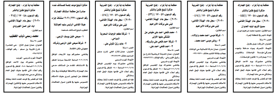 مذكرات الطلب التي تنشرها سرايا بعض الاحكام الصادرة غيابياً إضافة إلى