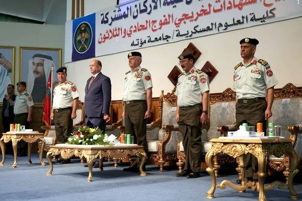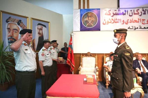 مندوباً عن جلالة الملك عبدالله الثاني، القائد الأعلى للقوات المسلحة، رعى رئيس هيئة الأركان المشتركة اللواء الركن يوسف أحمد الحنيطي، اليوم الإثنين، حفل تخريج الفوج الحادي والثلاثين من تلاميذ جامعة مؤتة الجناح العسكري وكان في استقباله رئيس جامعة مؤتة ونائب رئيس الجامعة للشؤون العسكرية.
