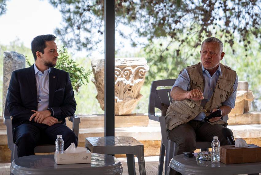 التقى جلالة الملك عبدالله الثاني، بحضور سمو الأمير الحسين بن عبدالله الثاني، ولي العهد، اليوم الاثنين، رؤساء أقسام الإدارة الملكية لحماية البيئة والسياحة، بموقع جبل نيبو.