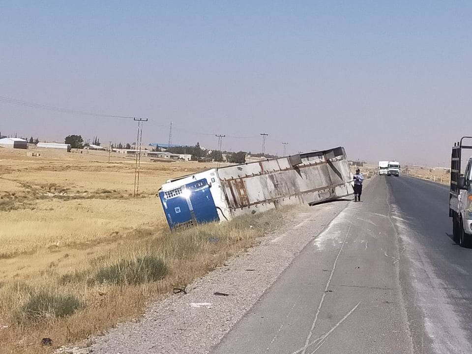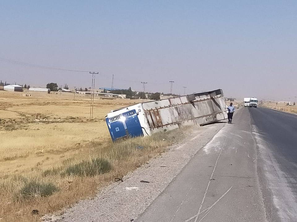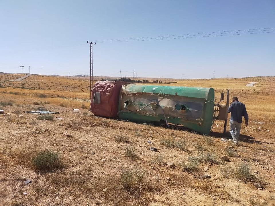 " ٤ " اصابات اثر حادث تصادم بين شاحنة وتنك مياه ومركبة في لواء الموقر