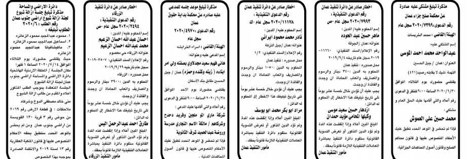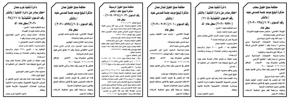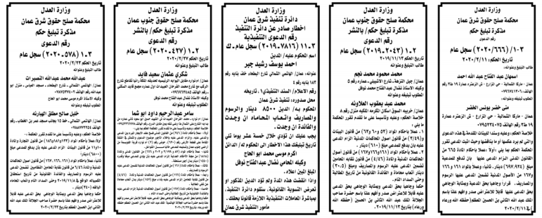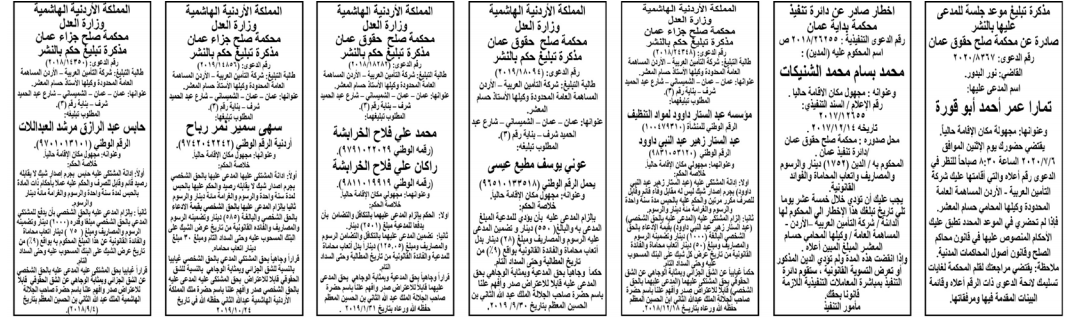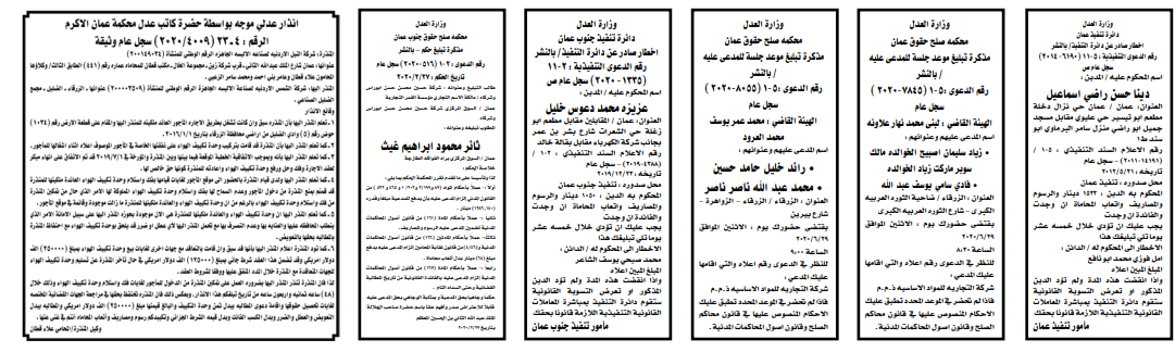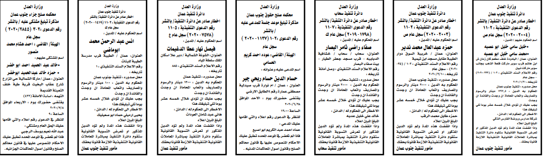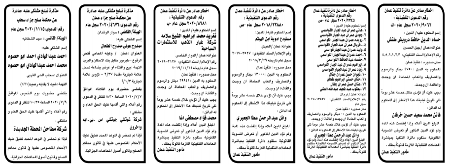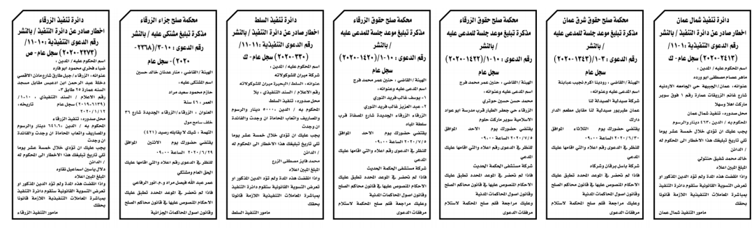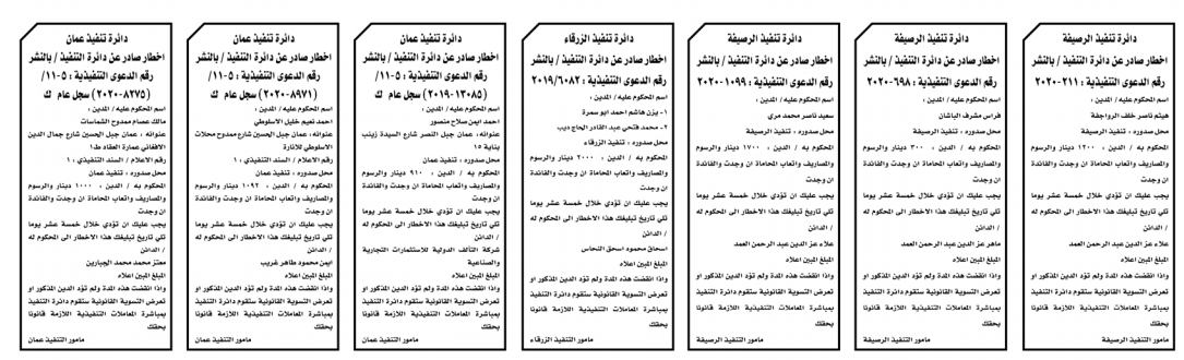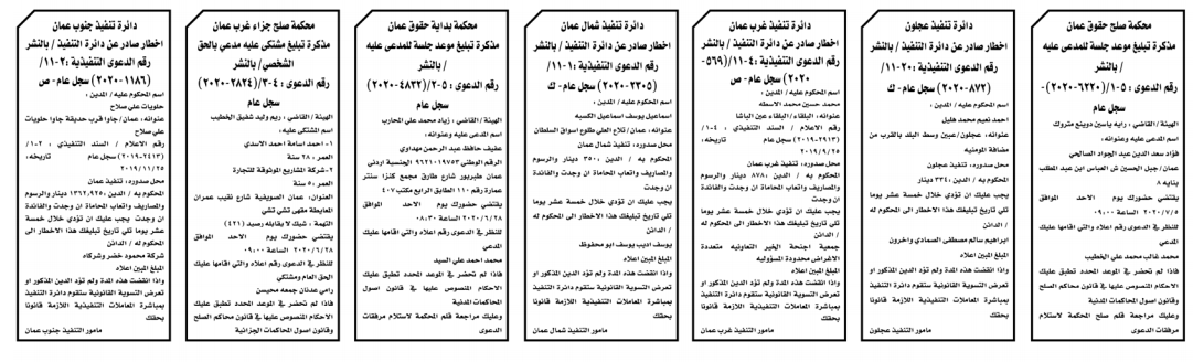 إخطارات وإشعارات صادرة عن دوائر التنفيذ بحق مدعى عليهم أشخاص كانوا أم