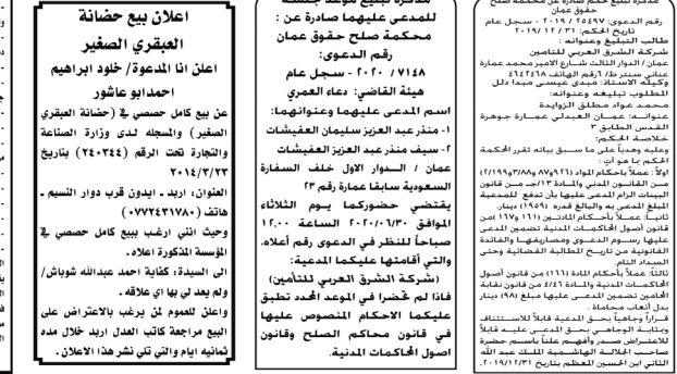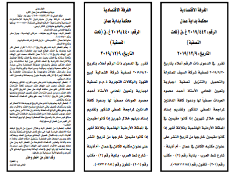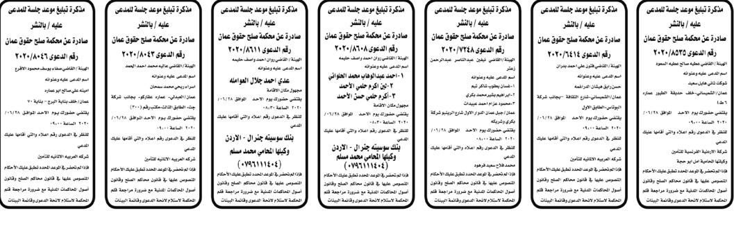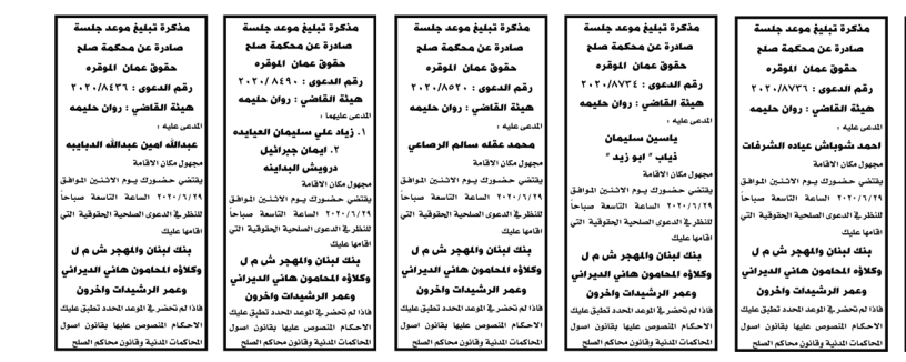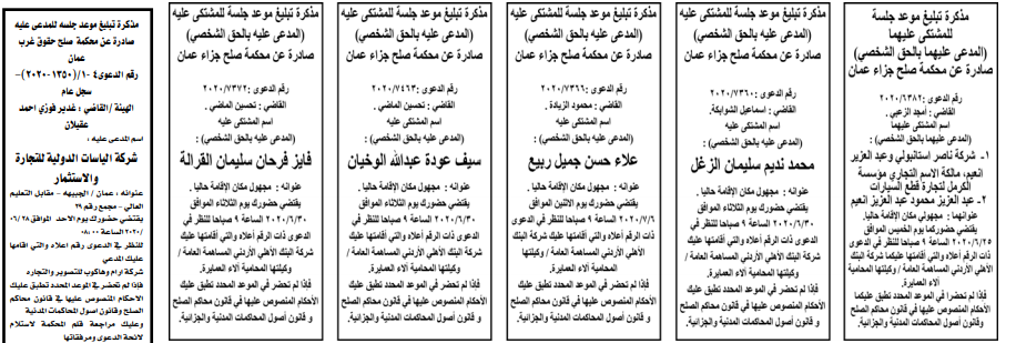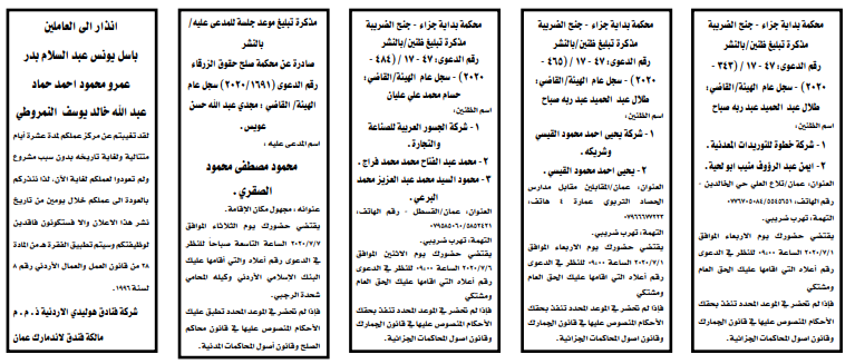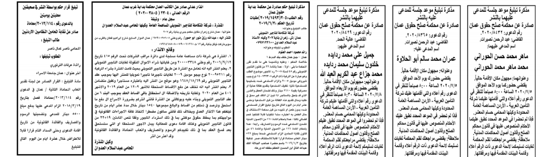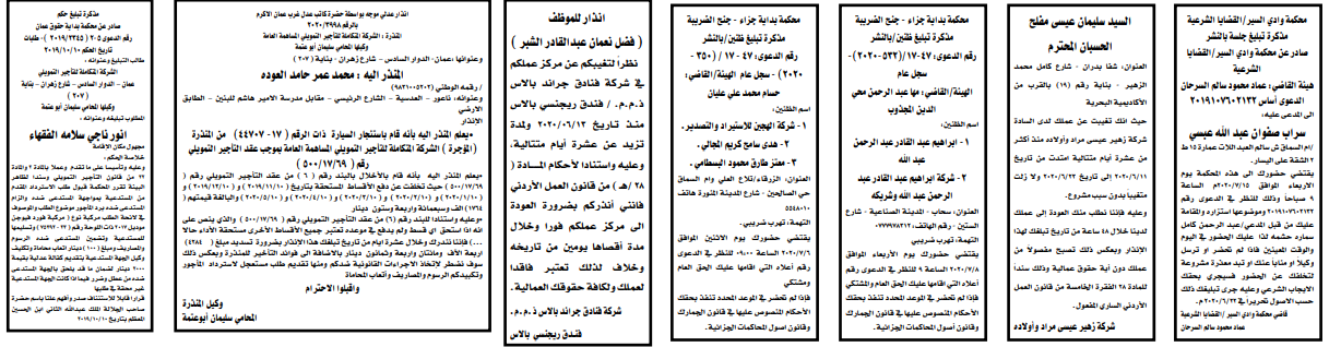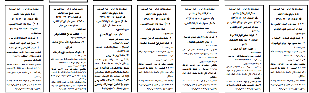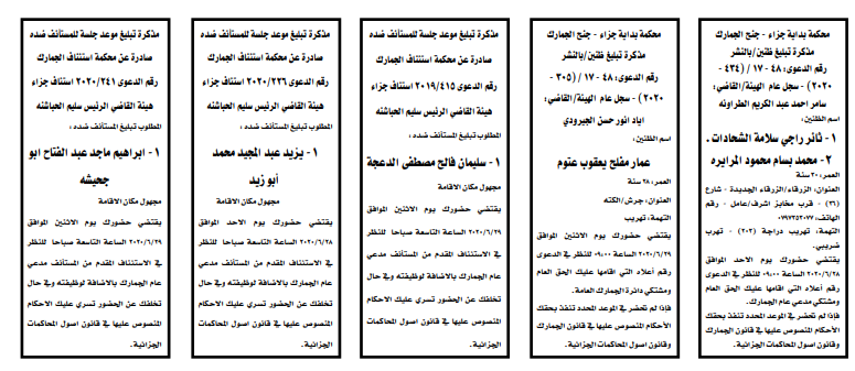 مذكرات الطلب التي تنشرها سرايا بعض الاحكام الصادرة غيابياً إضافة إلى