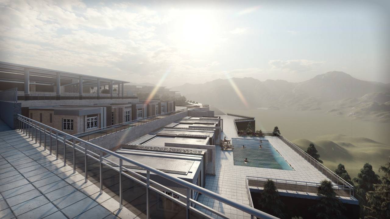 وقال يوفر المشروع إمكانية المبيت مع توفير جميع سبل الراحة للزائرين حيث يتكون المشروع من عدد كبير من الشاليهات الفخمة والراقية بمساحات كبيرة مع وجود مبنى خدمي يتبع لكل مجموعة منها، كما يحتوي على مبنى استقبال رئيسي للزوار، ومطعمين، مع وجود مقهى رئيسي كبير وبرك خارجية، بالإضافة الى وجود مجمع رياضي كبير يوفر للزائرين ممارسة رياضاتهم ضمن بيئة صحية مناسبة