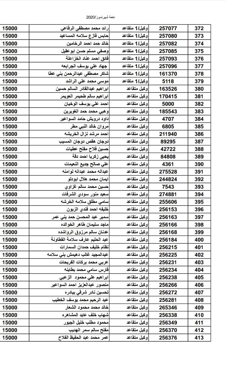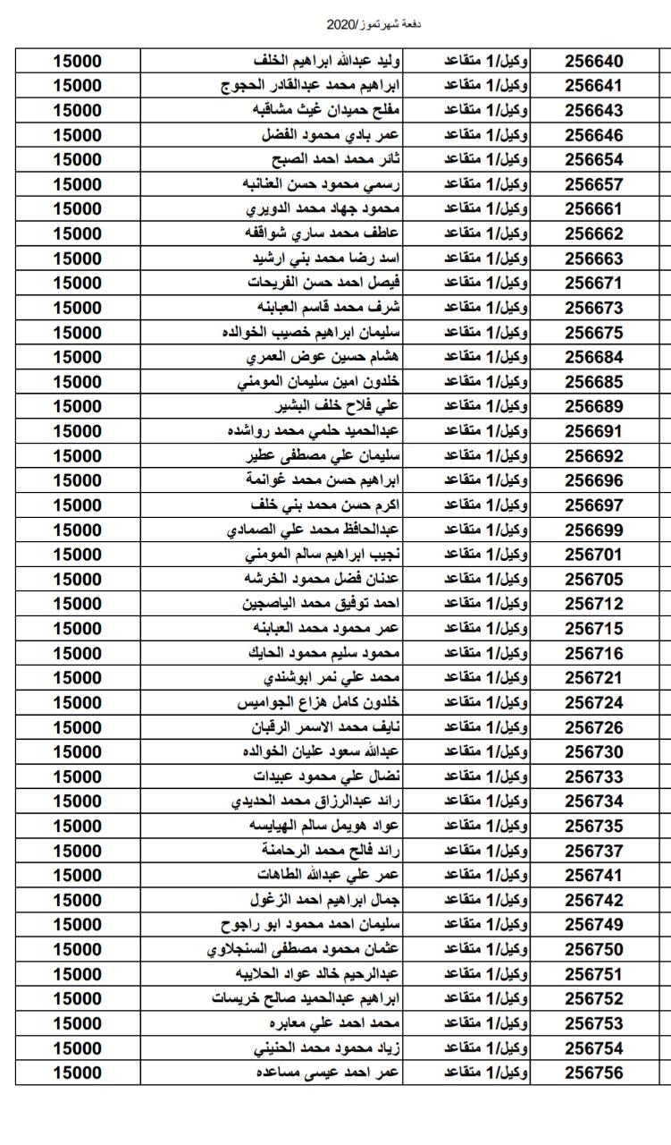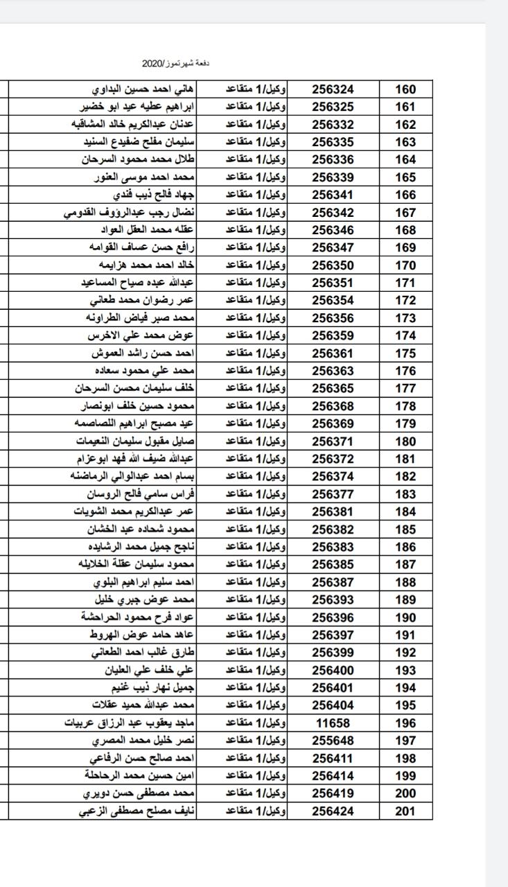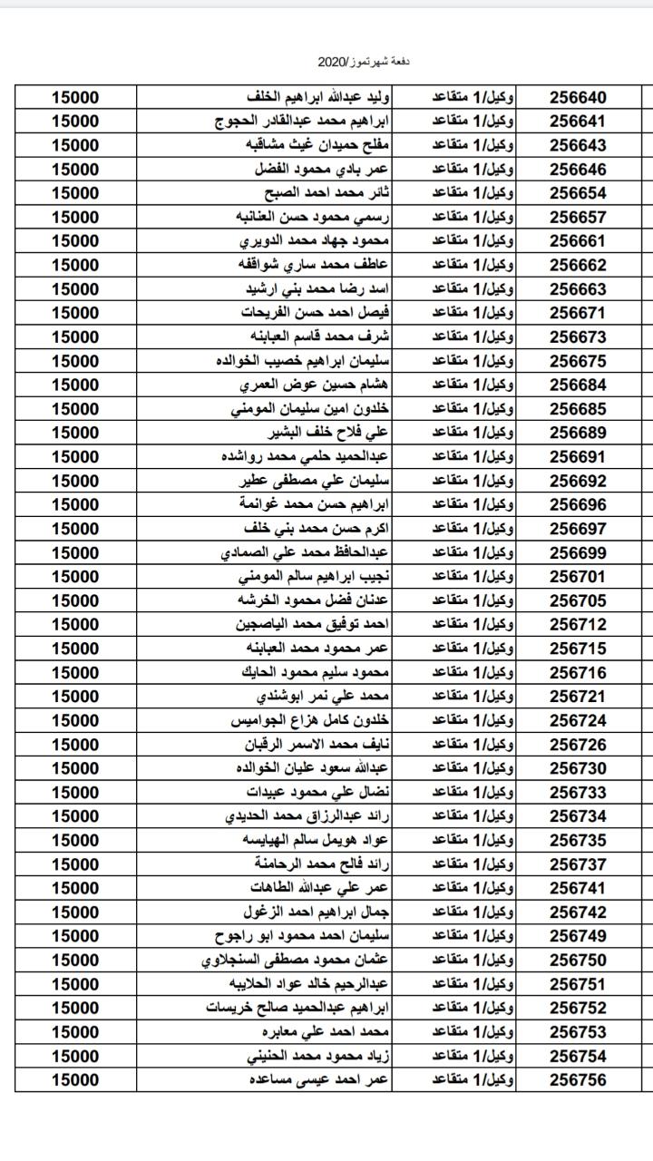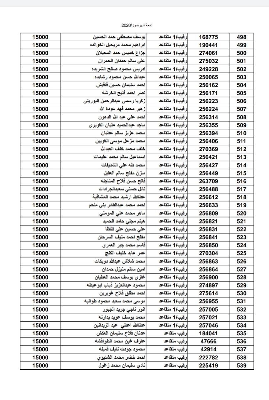 أسماء المستفيدين من ضباط وضباط صف وأفراد شهر 7-2020