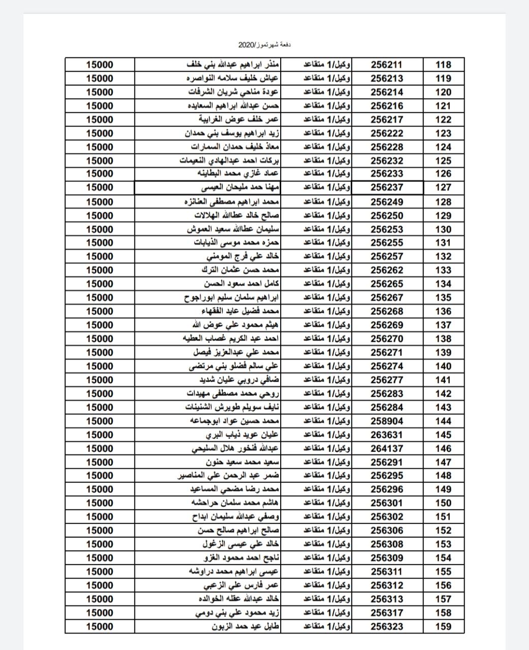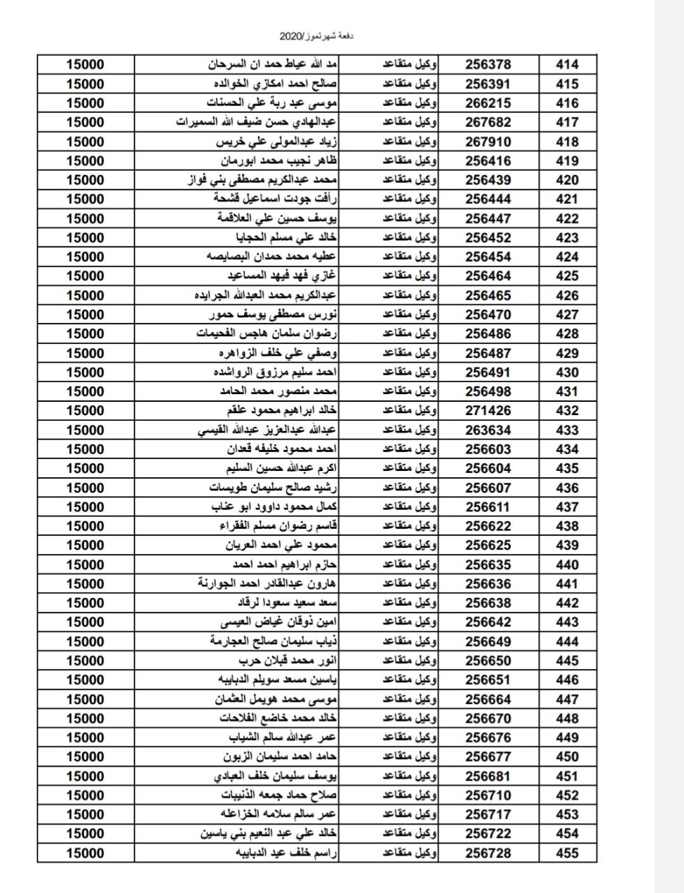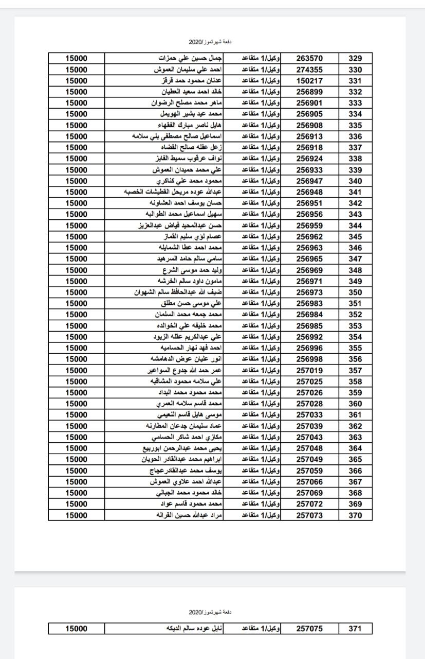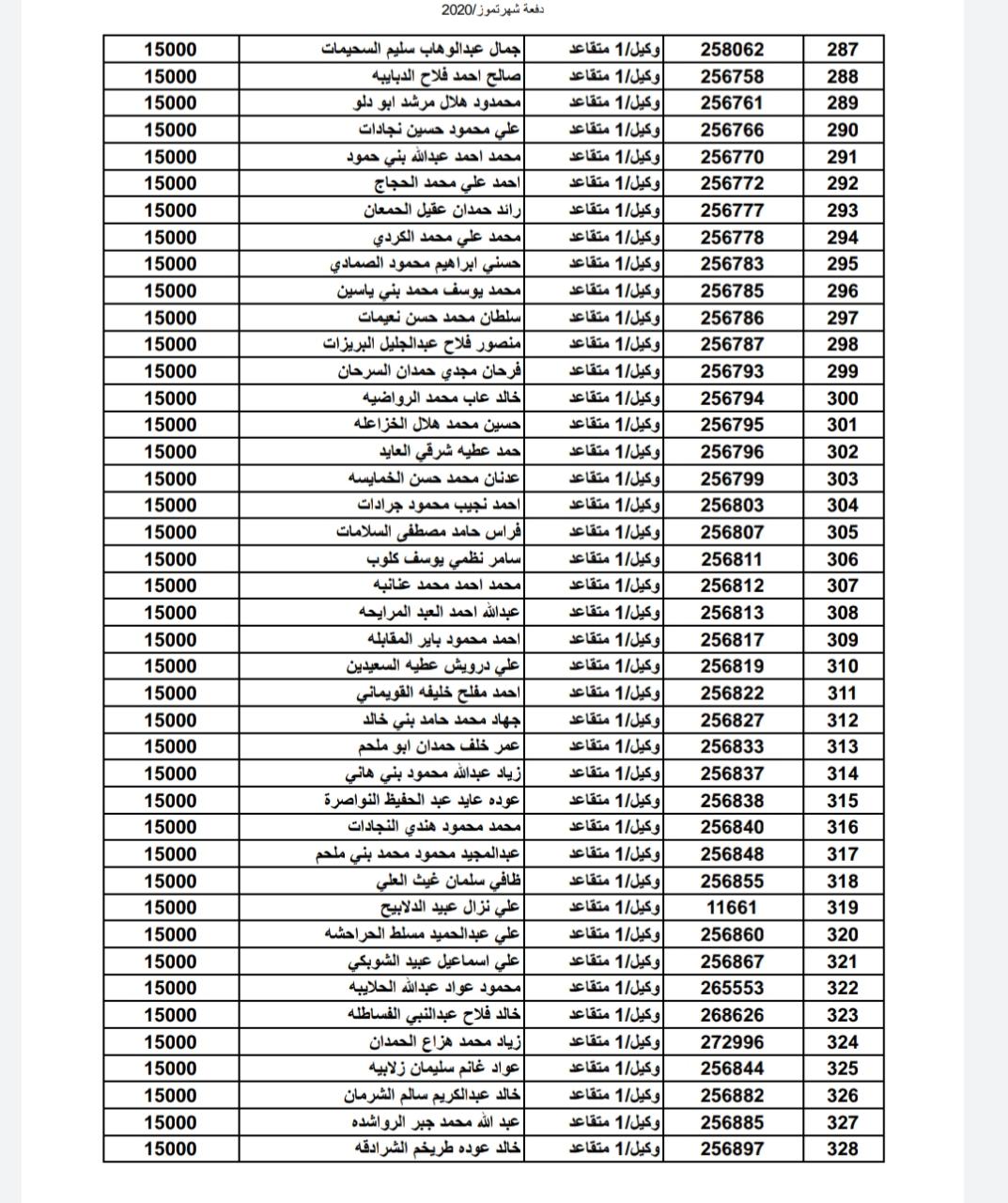 أسماء المستفيدين من ضباط وضباط صف وأفراد شهر 7-2020