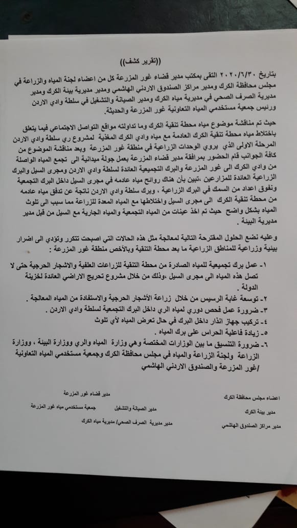تستنكر جمعية استثمار الطاقة المتجددة والبيئة وتدين بشدة الانتهاك الصارخ الذي طال وادي الكرك متمثلا بتدفق المياه العادمة إلى مجرى الوادي مهددة المكون البيئي للوادي برمته واننا لن نقف عند الإدانة فقط وسنسعى للتصيعد والنشر مالم يتم وضع حلول عاجلة ومستدامة لمنع وقوع مثل هذا الانتهاك مجددا واننا نطالب الجهات المختصة بفتح تحقيق شامل لمعرفة الأسباب التي أدت إلى هذا التجاوز الخطير ومحاسبة كل مقصر مهما كان موقعة او صفته ....