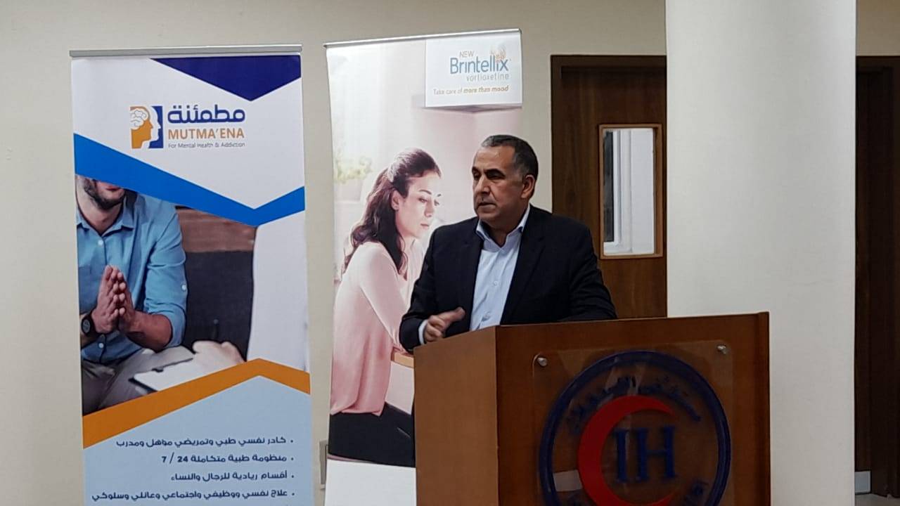 رئيس الجمعية ورئيس إختصاص الطب النفسي في وزارة الصحة الدكتور نايل العدوان هنأ خلال كلمة له في الإحتفالية القائمين والعاملين في مستشفى الإستقلال وعلى رأسهم المدير العام السيد أحمد الأحمد على الجهود الكبيرة والمميزة التي يبذلونها ويقدمونها من أجل المحافظة على الريادة في المجالات الطبية والرعاية الصحية لا سيما وأن مستشفى الإستقلال صاحب المبادرات والسباق دائماً لإستحداث وادخال كافة التخصصات العلاجية التي يحتاجها المرضى وأن هذا الاجتماع اليوم هو احتفالاً بافتتاح قسم "مطمئنة" للطب النفسي ليقدم خدمات المعالجة الخارجية والادخال للذكور والاناث لعلاج الأمراض النفسية والإدمان ضمن منظومة طبية متكاملة توفر رعاية شاملة بإشراف فريق متعدد التخصصات وعلى درجة عالية من الكفاءة وضمن بيئة آمنة