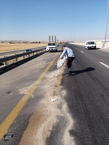 تعاملت مجموعة الدوريات الخارجية، صباح الخميس، مع انسكاب حمولة ديزل من إحدى الشاحنات على الشارع العام بالقرب من جسر ذهيبة شارع 100 باتجاه الزرقاء.