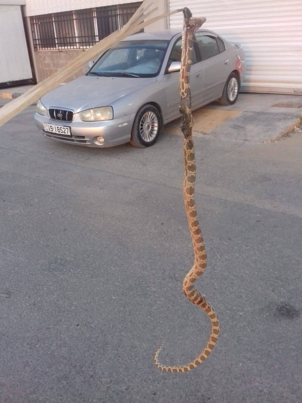 مواطن يقدم على قتل افعى سامة في المفرق ...صور