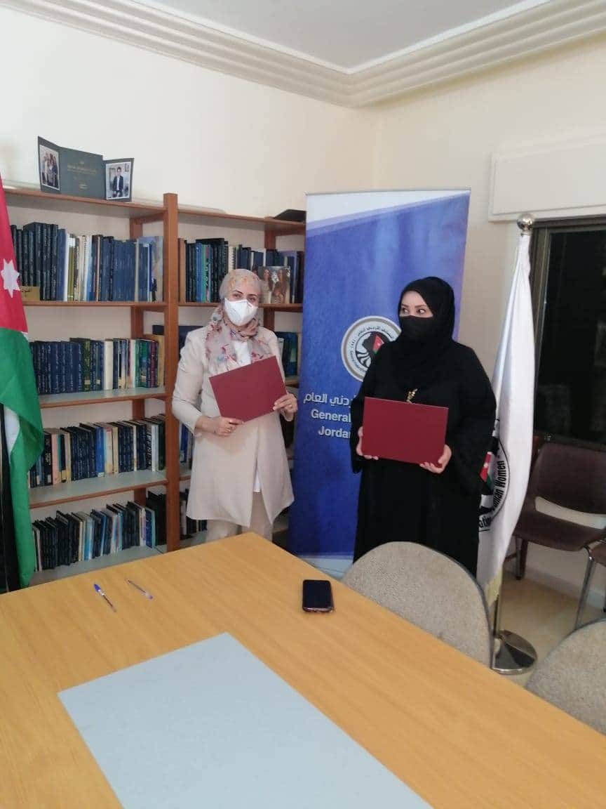 تم توقيع مذكرة تفاهم بين الإتحاد النسائي الأردني العام وتمثله الدكتورة ميسون تليلان السليم ومركز العالم العربي للتنمية الديمقراطية وحقوق الإنسان (UNIHRD) مندوباً عنه الدكتورة أميرة مصطفى مديرة المركز .