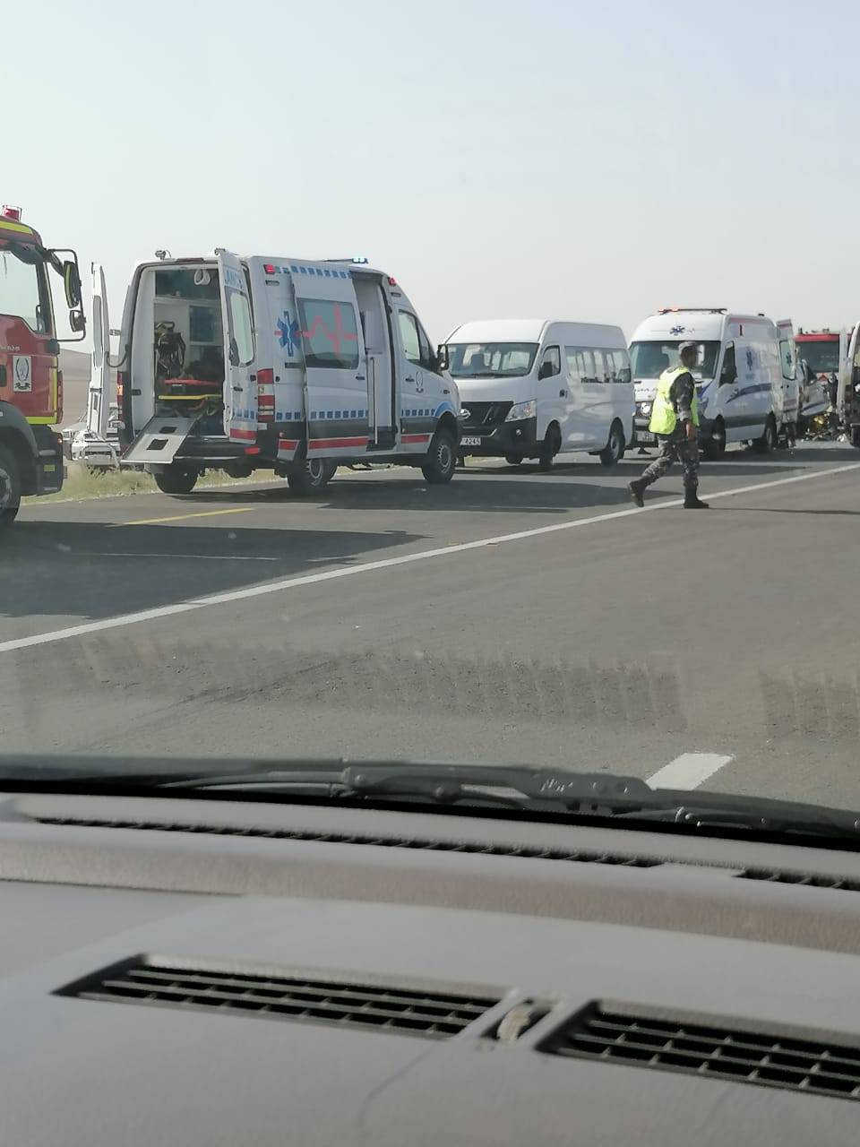 اصيب 3 اشخاص على الاقل صباح  اليوم الخميس  ، في حادث تصادم  على الطريق الصحراوي بالقرب من القطرانة .