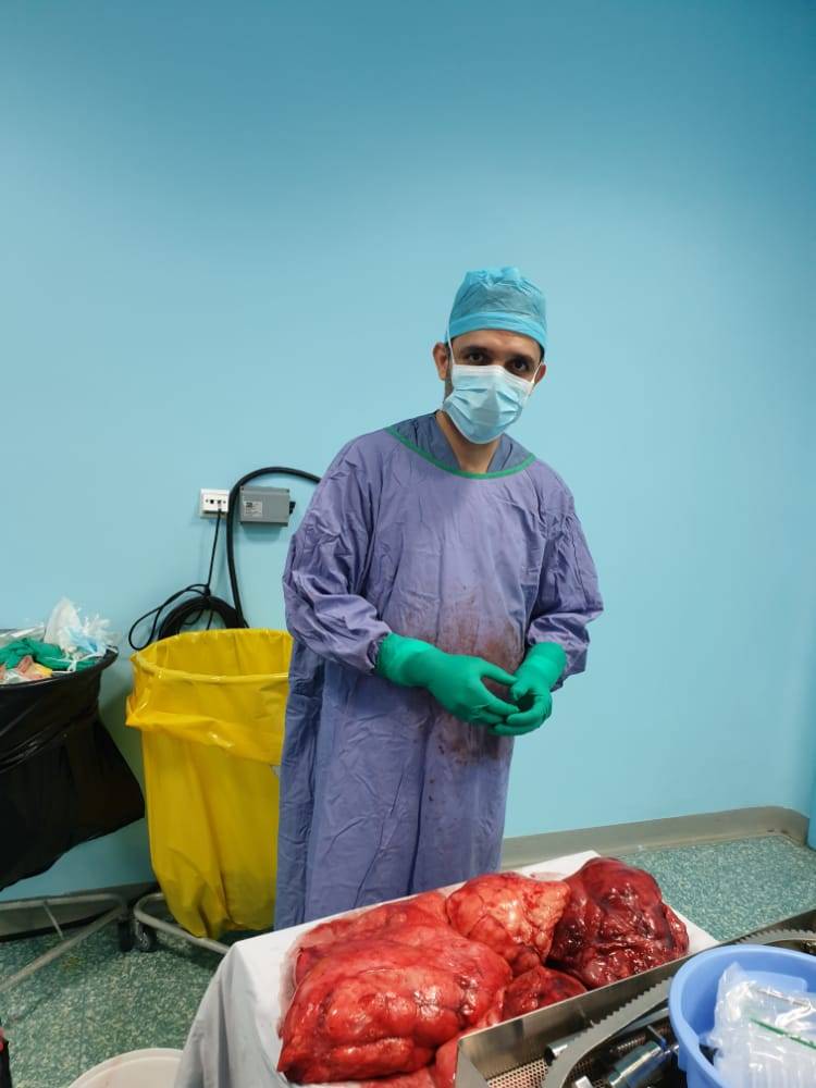 وتمثلت العملية بإجراء استئصال كامل للكتلة التي بلغ وزنها تسعة كيلو غراما حيث انها كانت تشغل ما يزيد عن 80% من حجم تجويف البطن متسببة باحداث ضغط كبير على الاعضاء المجاورة خاصة المعدة والامعاء الدقيقة والقولون، بالاضافة الى الكلية اليمنى للمريض .