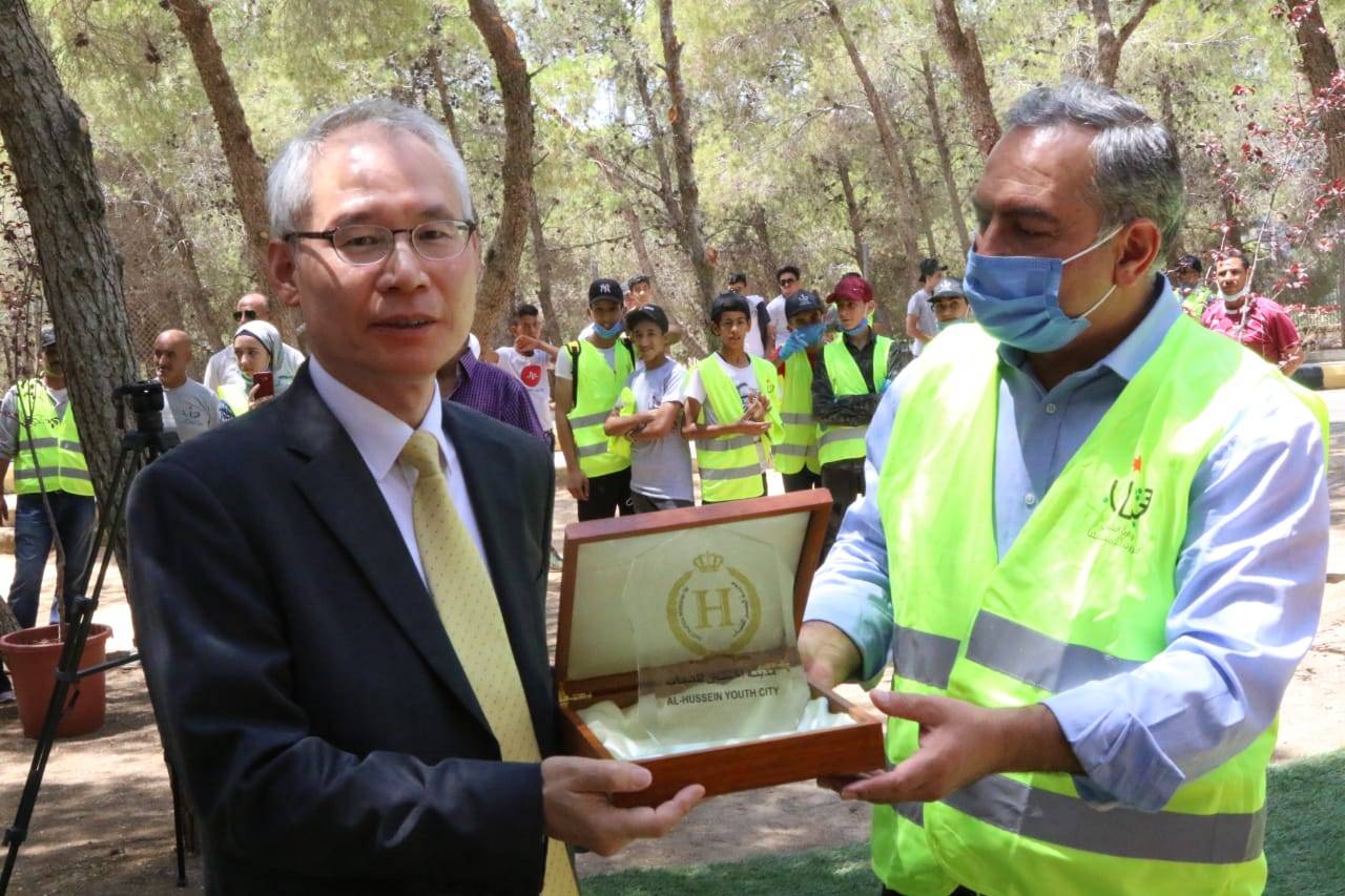 من جانبه قال السفير الكوري لدى المملكة جي ون لي: يسرني ويشرفني ان اكون بمناسبة افتتاح النادي الرياضي الخارجي في مدينة الحسين للشباب.
