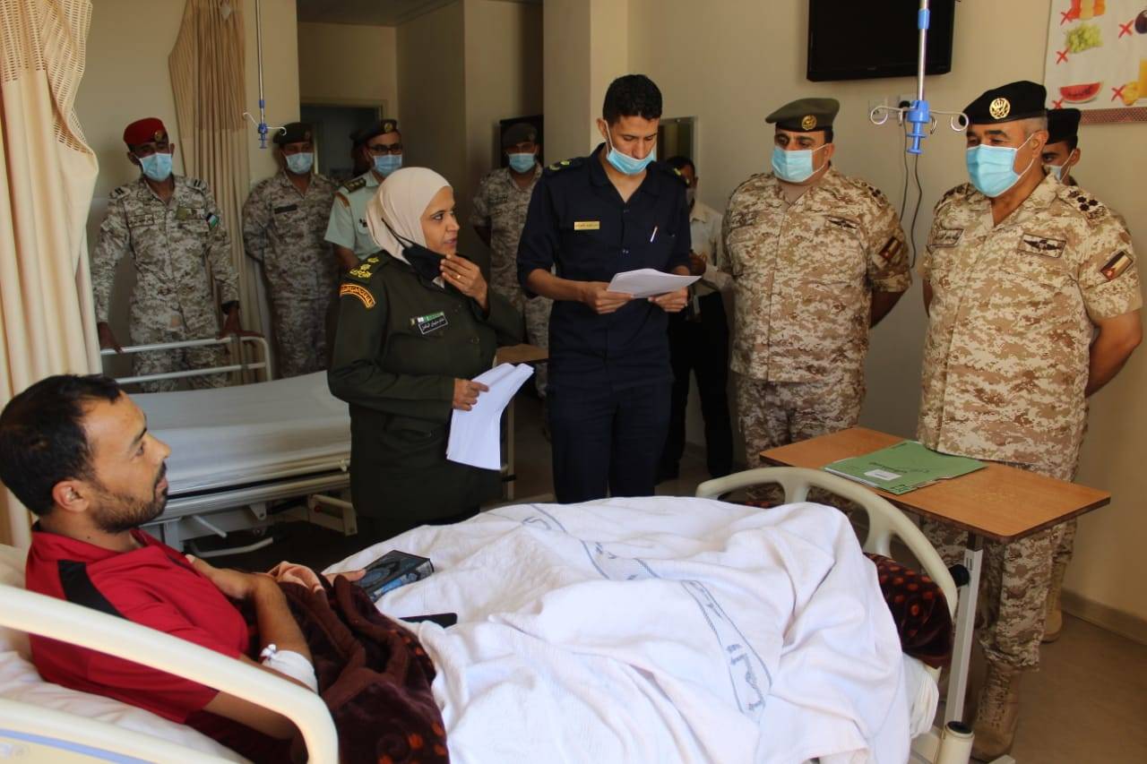 كما تفقد كبار الضباط جميع المستشفيات العسكرية التابعة للخدمات الطبية الملكية في مختلف محافظات المملكة، للاطمئنان على الأوضاع الصحية للمرضى من العسكريين العاملين والمتقاعدين، ونقلوا لهم تهنئة وتحيات رئيس هيئة الأركان المشتركة اللواء الركن يوسف أحمد الحنيطي بمناسبة عيد الأضحى المبارك وتمنياته لهم بالشفاء العاجل.