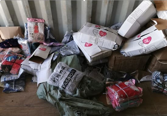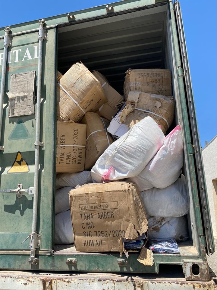 ملابس سعة40 قدم تحتوي على ٥٠ الف قطعة تم ضبطها داخل العاصمة عمان.
