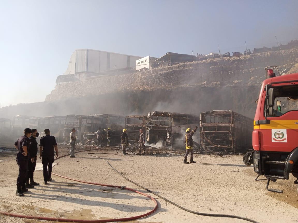 عاجل... حريق بمعرض للباصات بالمنطقة الحرة بالزرقاء... صور وفيديو