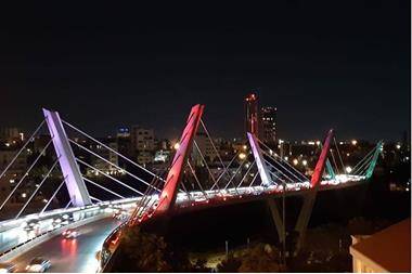 قامت امانة عمان بنشر علم لبنان على امتداد جسر عبدون مساء اليوم للتضامن مع الشعب اللبناني بعد الانفجار الذي وقع في بيروت .