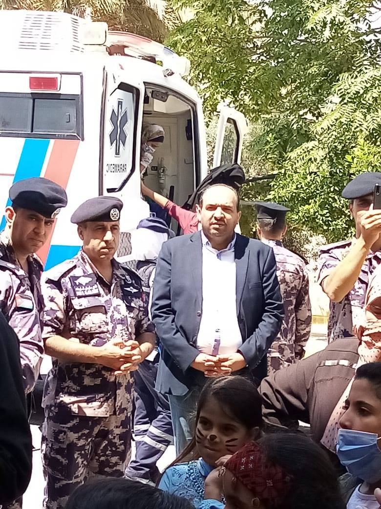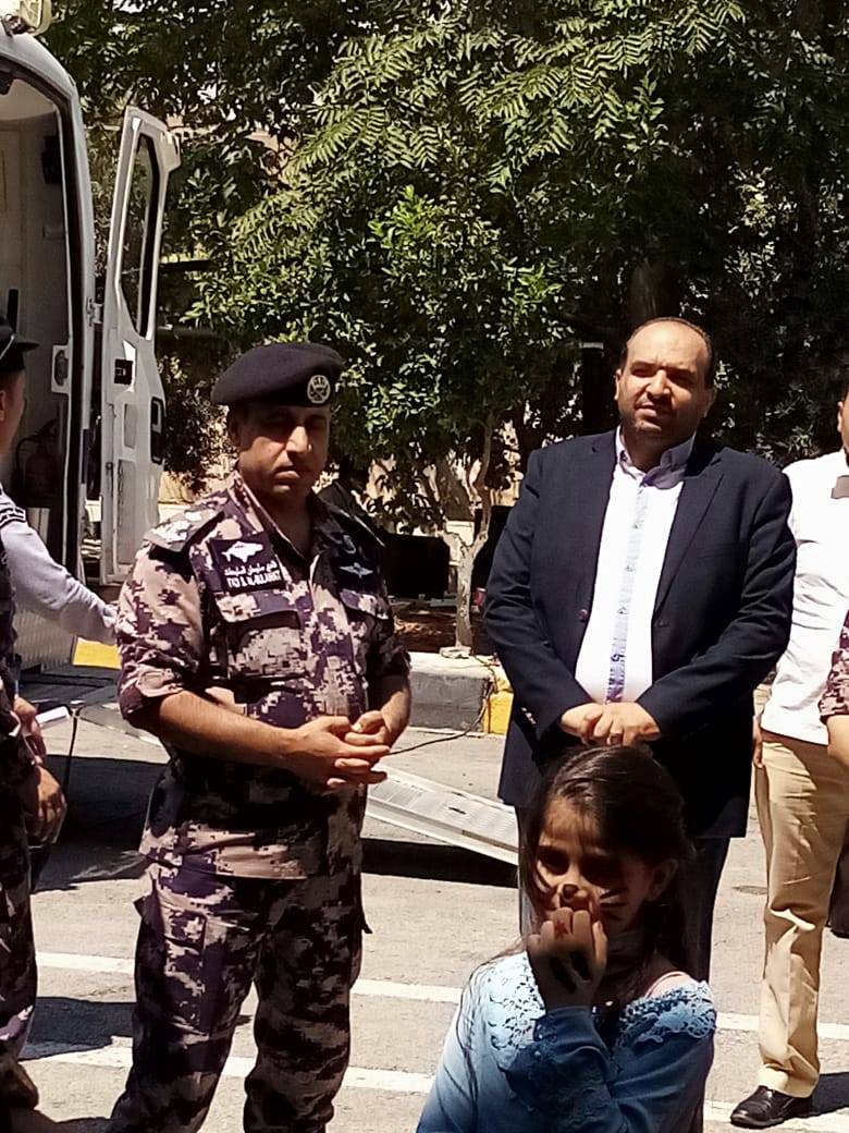 وكان في مقدمة استقبال أطفال جمعية كافل اليتيم الخيرية ، و مؤسسة اعمار منشية المفرق ،  مدير دفاع مدني المفرق المقدم فادي سليحات  .