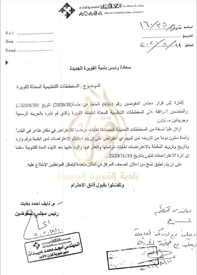 مع العلم ان فترة تقديم الاعتراض على المخططات تنتهي بتاريخ ٢٠٢٠/١٠/١٠.