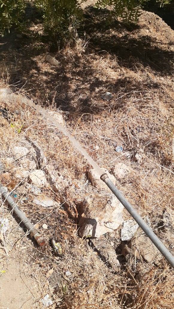 وفي منطقة الخرشة تم ضبط اعتداء من قبل مزرعة زيتون على الخط الرئيسي لتزويد المزرعة من خلال خط قطر ( انش ) حيث تم تصويب الوضع واعداد الضبط الخاص والعمل جار لتحديد اصحاب هذه المزارع والمعتدين .