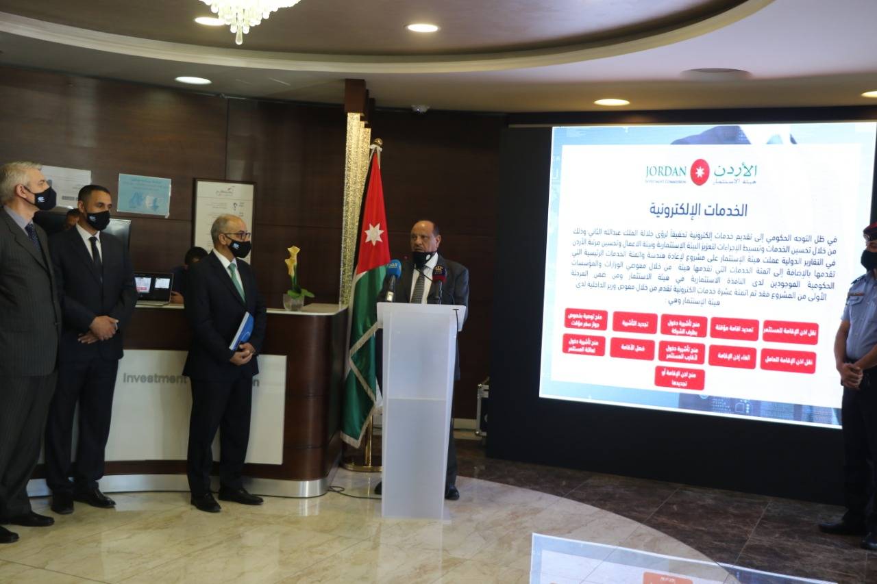 وقال أن الخدمات التي تطلقها اليوم هيئة الإستثمار وبحضور وزير الداخلية سلامة حماد هي عشرة خدمات الكترونية تتعلق بإصدار التأشيرات والإقامات للمستثمرين من خلال مفوض وزارة الداخلية لدى هيئة الإستثمار، إضافة إلى إطلاق خدمة مركز الإتصال الخاص بهيئة الإستثمار وبدعم من وزارة الاقتصاد الرقمي والريادة وضمن برنامج الحكومة الإلكترونية، وإطلاق هذه الخدمات يعتبر ضمن المرحلة الأولى لمشروع أتمتة كافة خدمات هيئة الإستثمار والتي نسعى قبل نهاية العام الحالي الى اتمتة كافة خدمات الهيئة والتي يبلغ عددها 71 خدمة إلكترونية متكاملة بالتشارك مع الجهات الممثلة في النافذة الاستثمارية ليكون ذلك اكبر مشروع خدمات إلكترونية بعدد خدماته تحت مظلة مؤسسة واحدة هي هيئة الاستثمار.